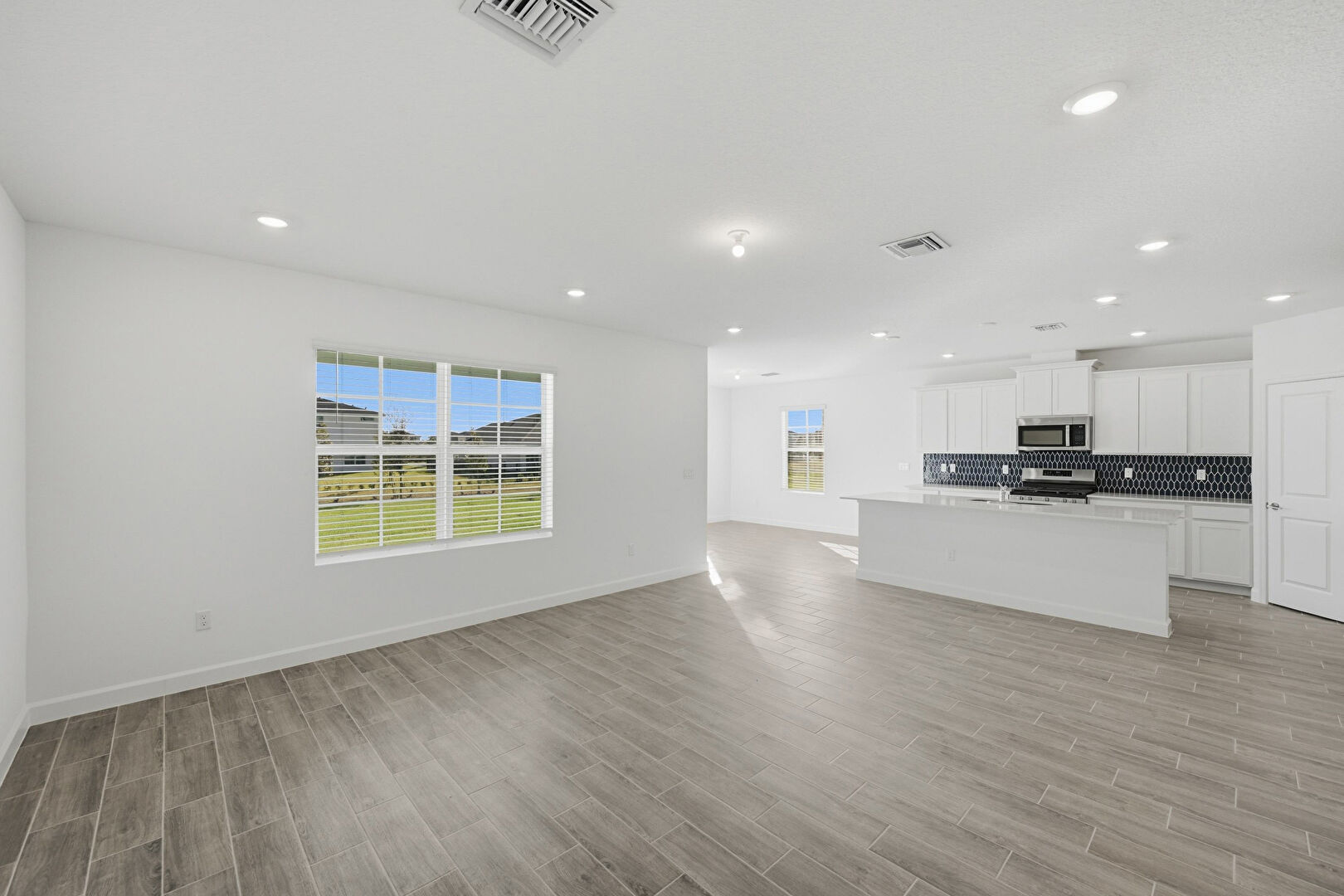 Baseboards Wall, Crown Molding Cabinets, Drywall, Kitchen Island, L Shaped Kitchen, Natural Light, Opens To Living Area, Recessed Lighting, Shaker Cabinets, Stone Countertops, Vent, Wood Finish Floor, Kitchen Island, Natural Light, Shaker Cabinets
