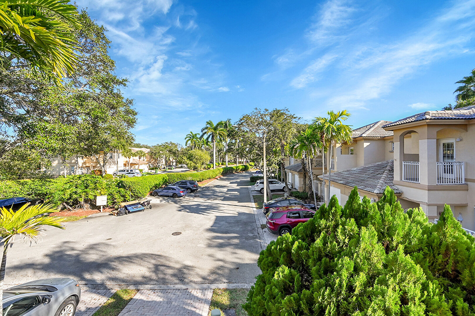 Ceiling Fan, Curbs, Sidewalks, Street, Stucco Siding, Vent, Balcony, Residential View, Tile Roof