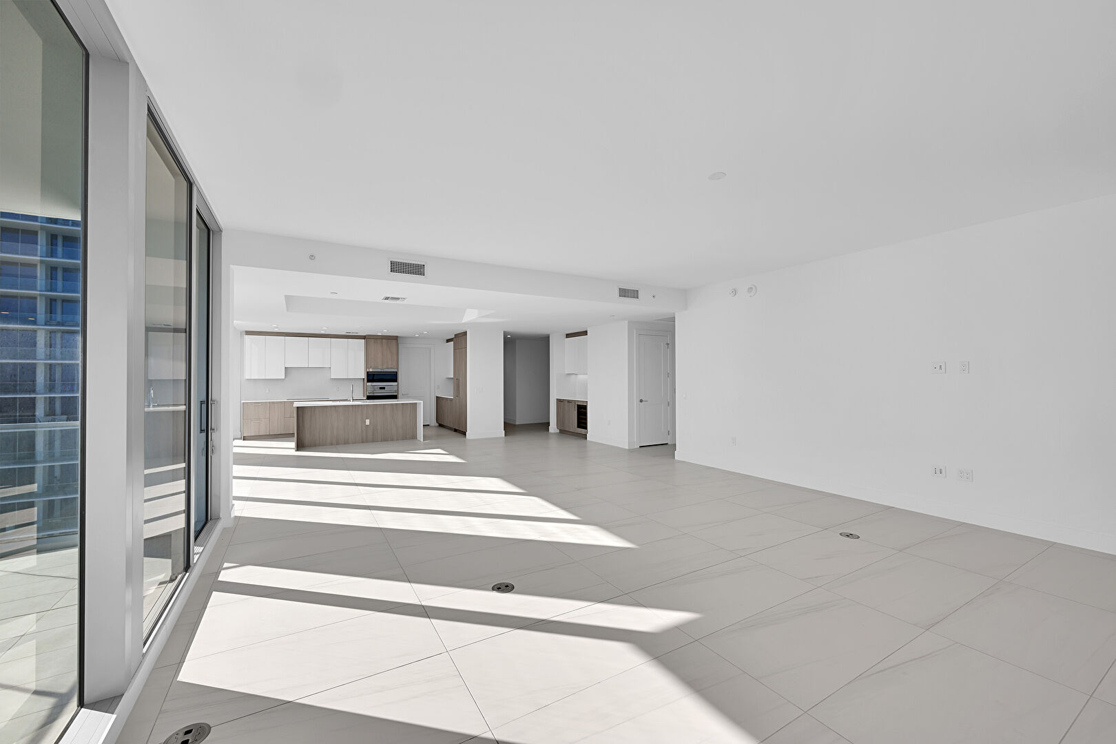 Baseboards Wall, City View, Double Oven, Drywall, Floor Ceiling Windows, Natural Light, Tile Floor, Tray Ceiling, Vent, Water View, Wine Cooler, Baseboards Wall, Drywall, Floor Ceiling Windows, Natural Light, Vent, Water View, Wine Cooler