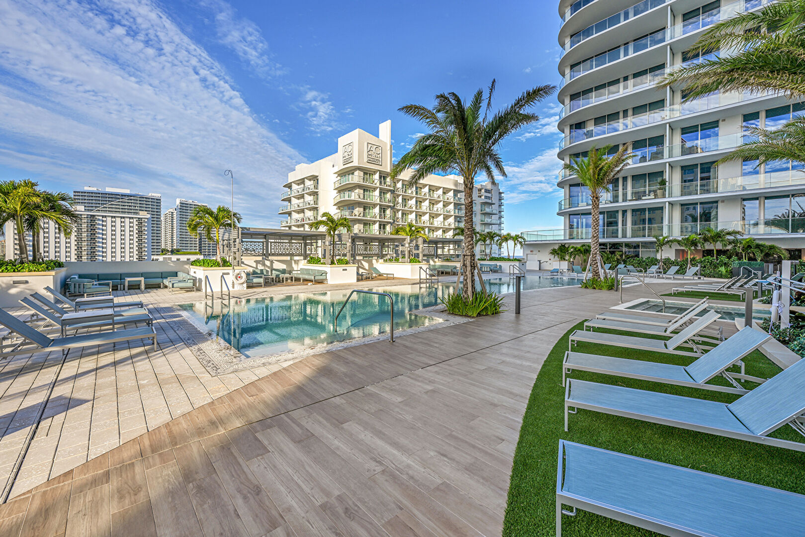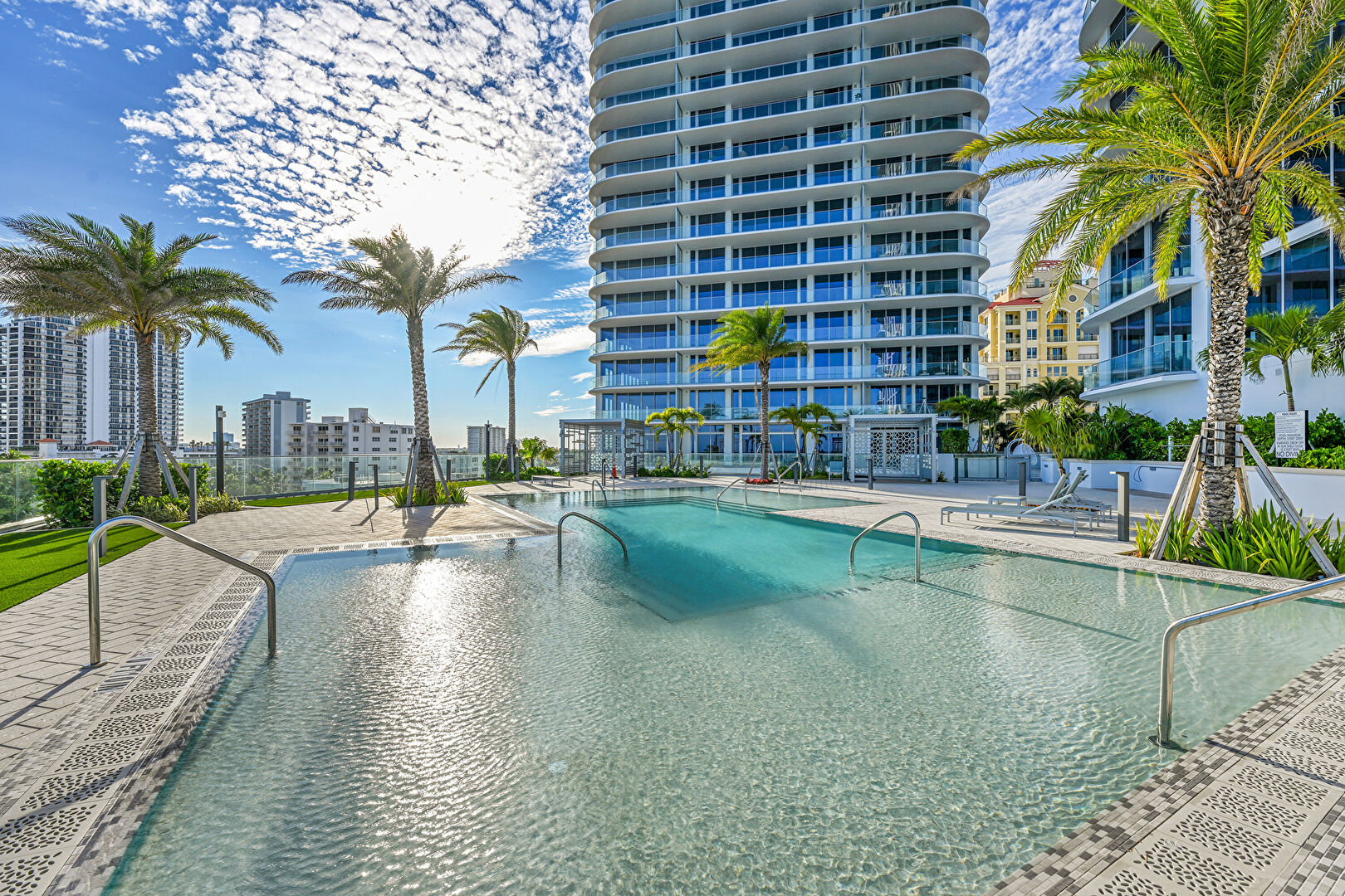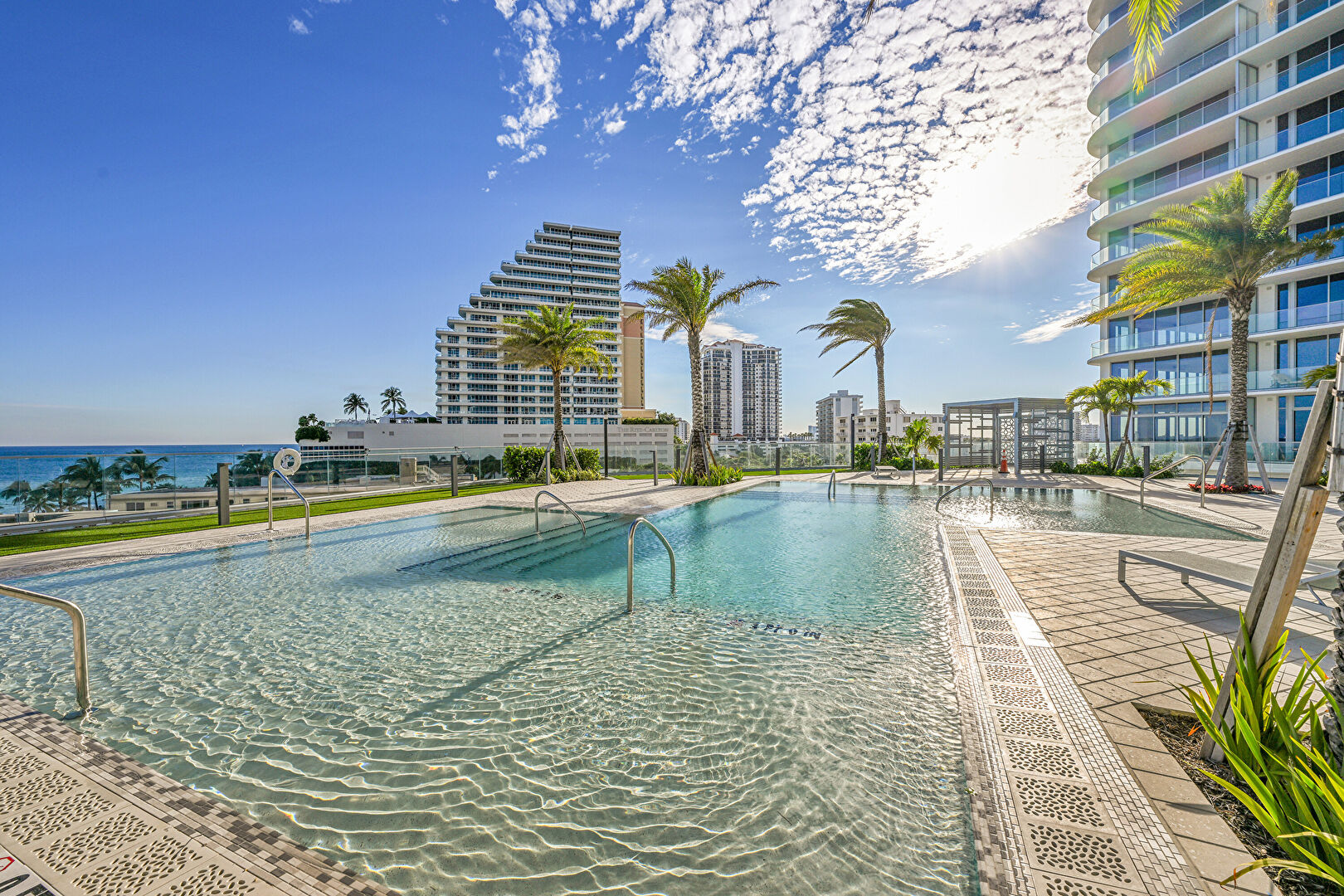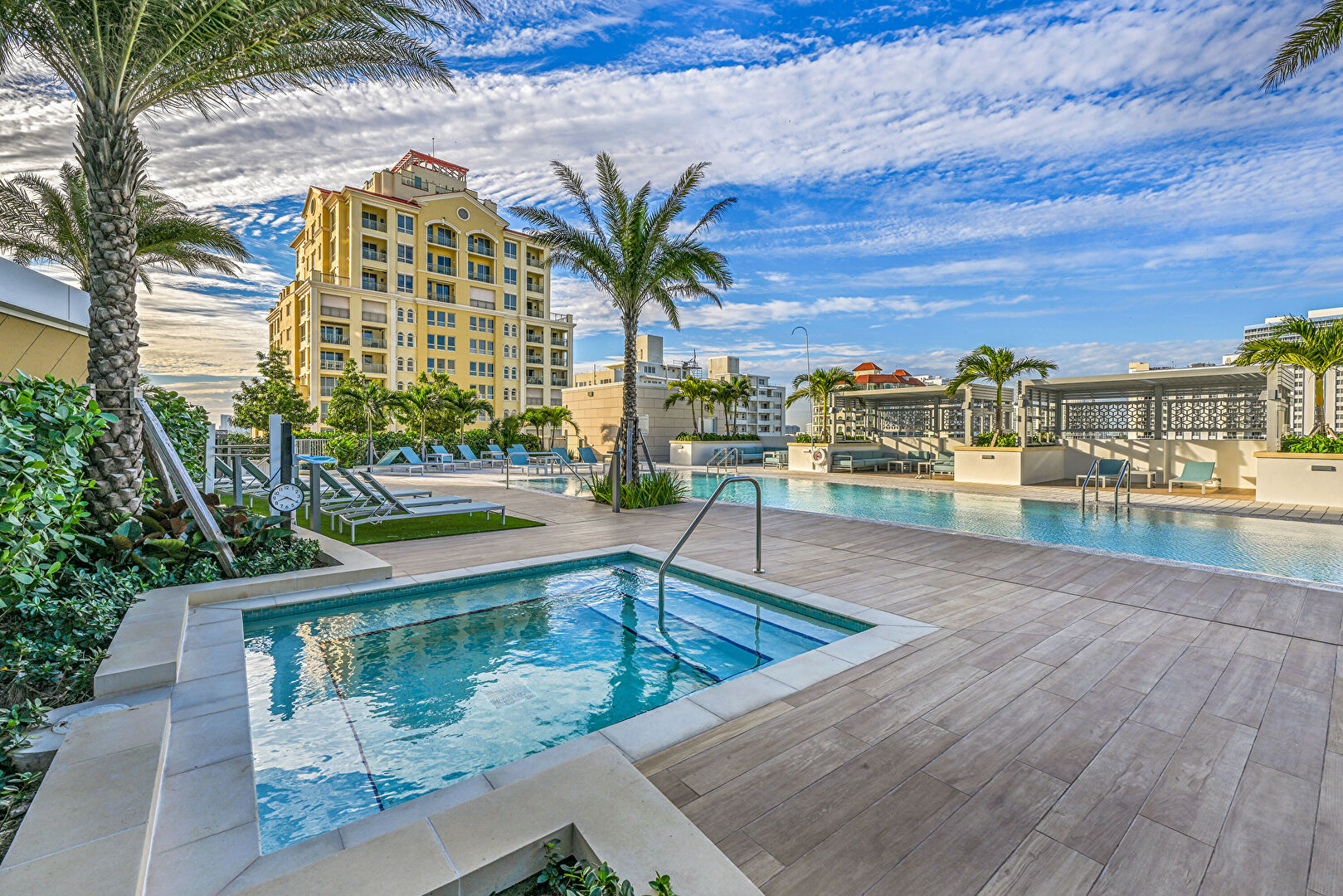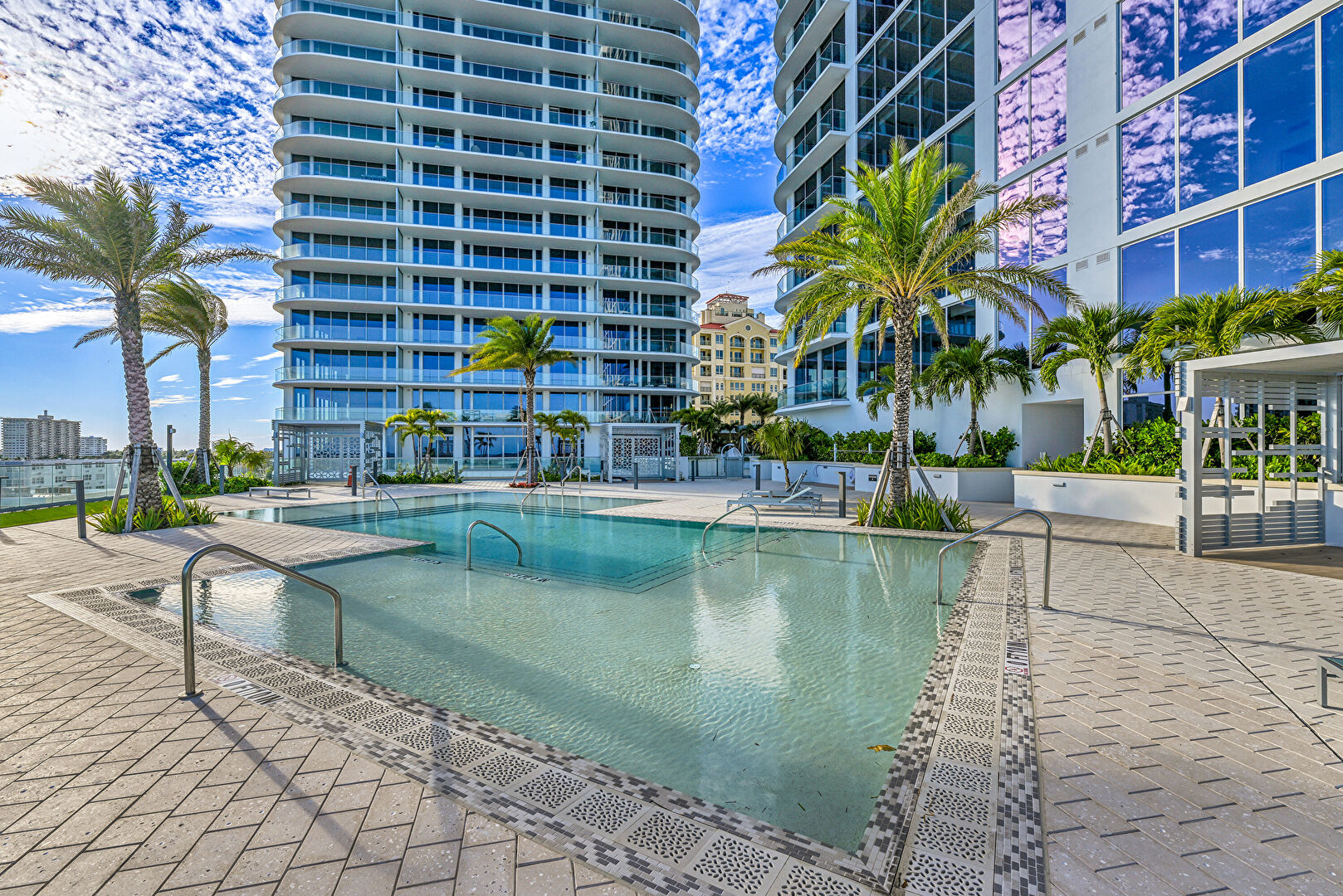 Apartment Complex View, City View, Fence, Handrail, Hot Tub, Pad Mount Transformer, Patio, Pool, Water View, Apartment Complex View, Handrail, Patio, Pool, Water View