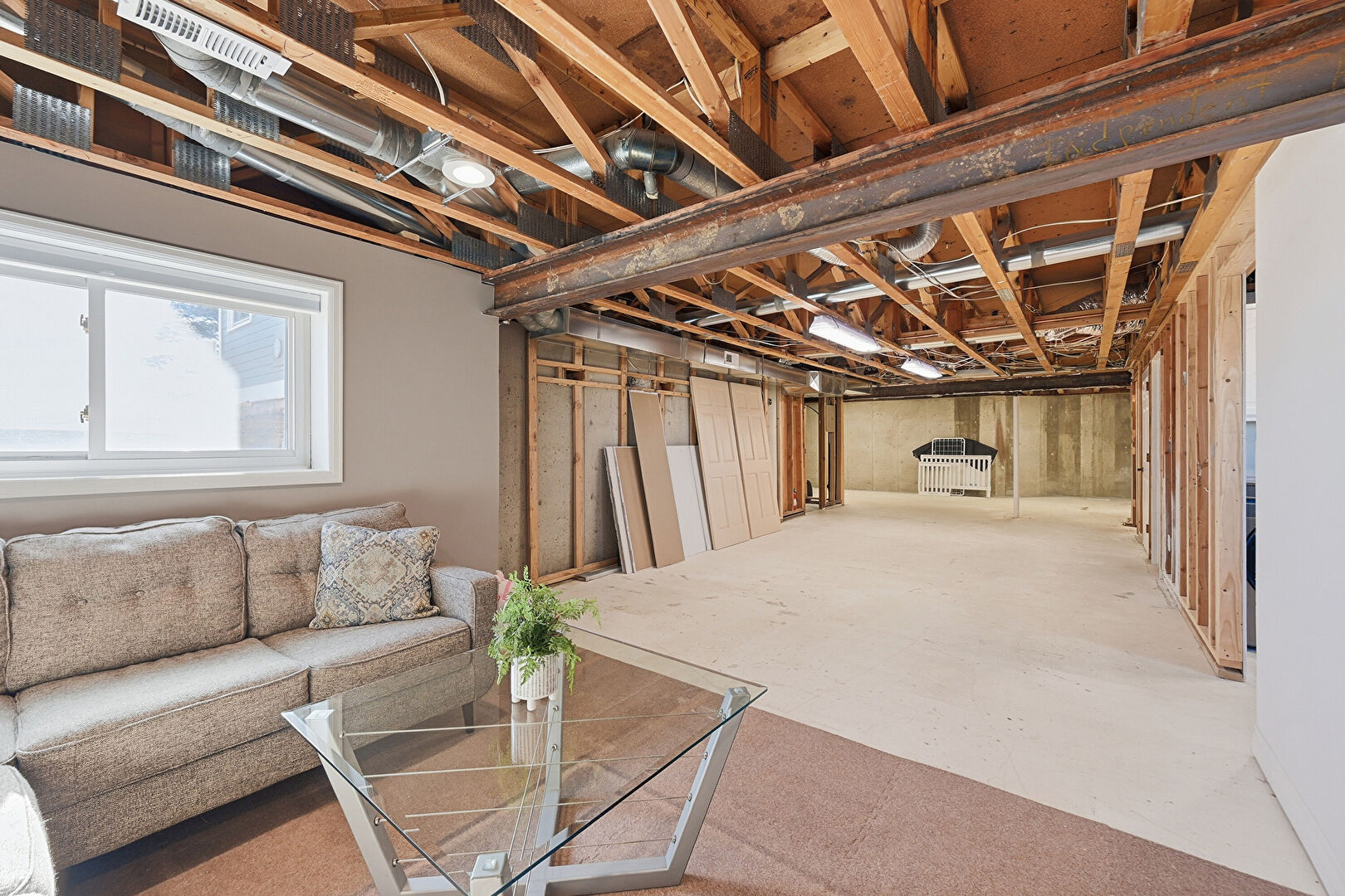 Basement, Drywall, Natural Light, Stairs, Concrete Foundation, Vent