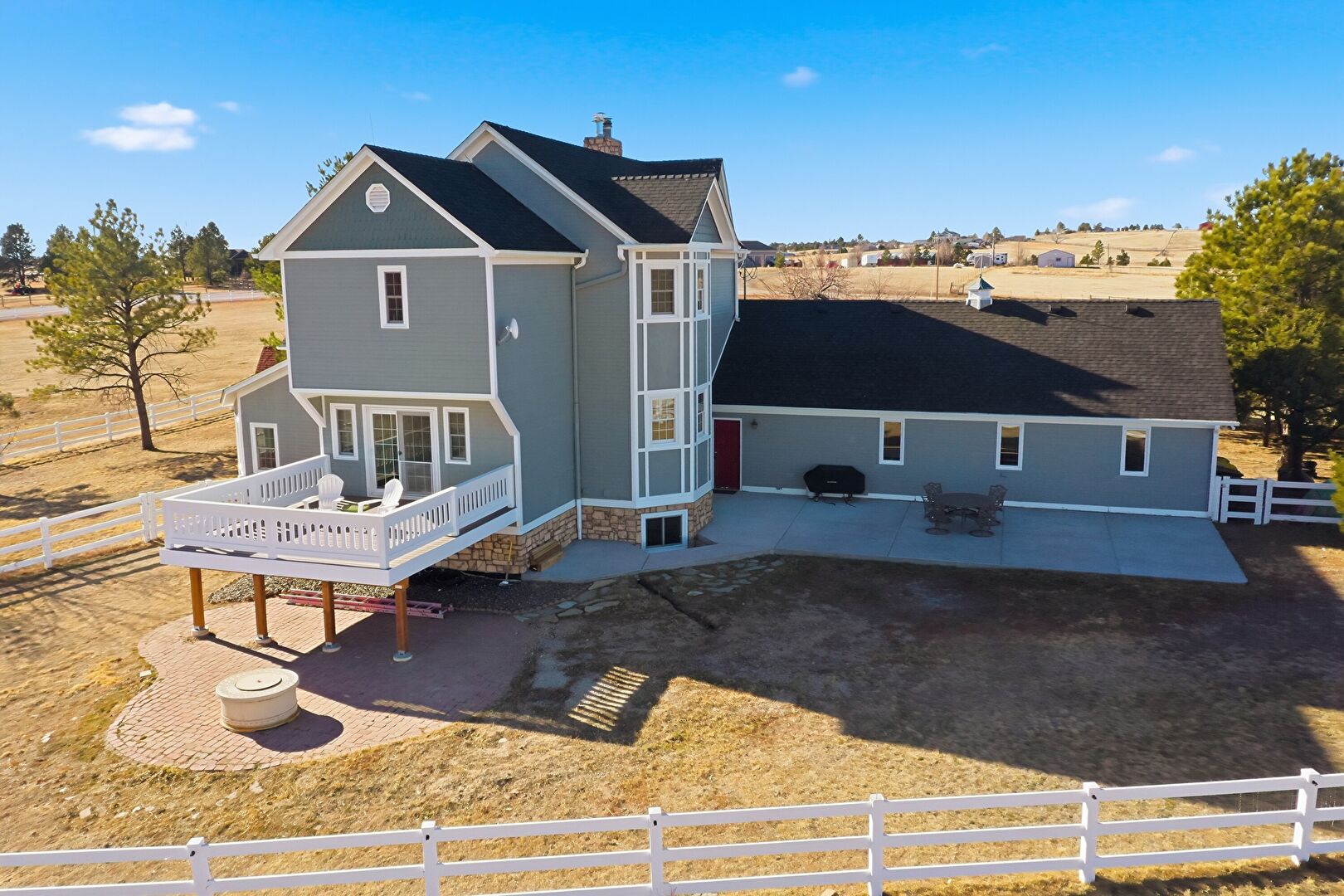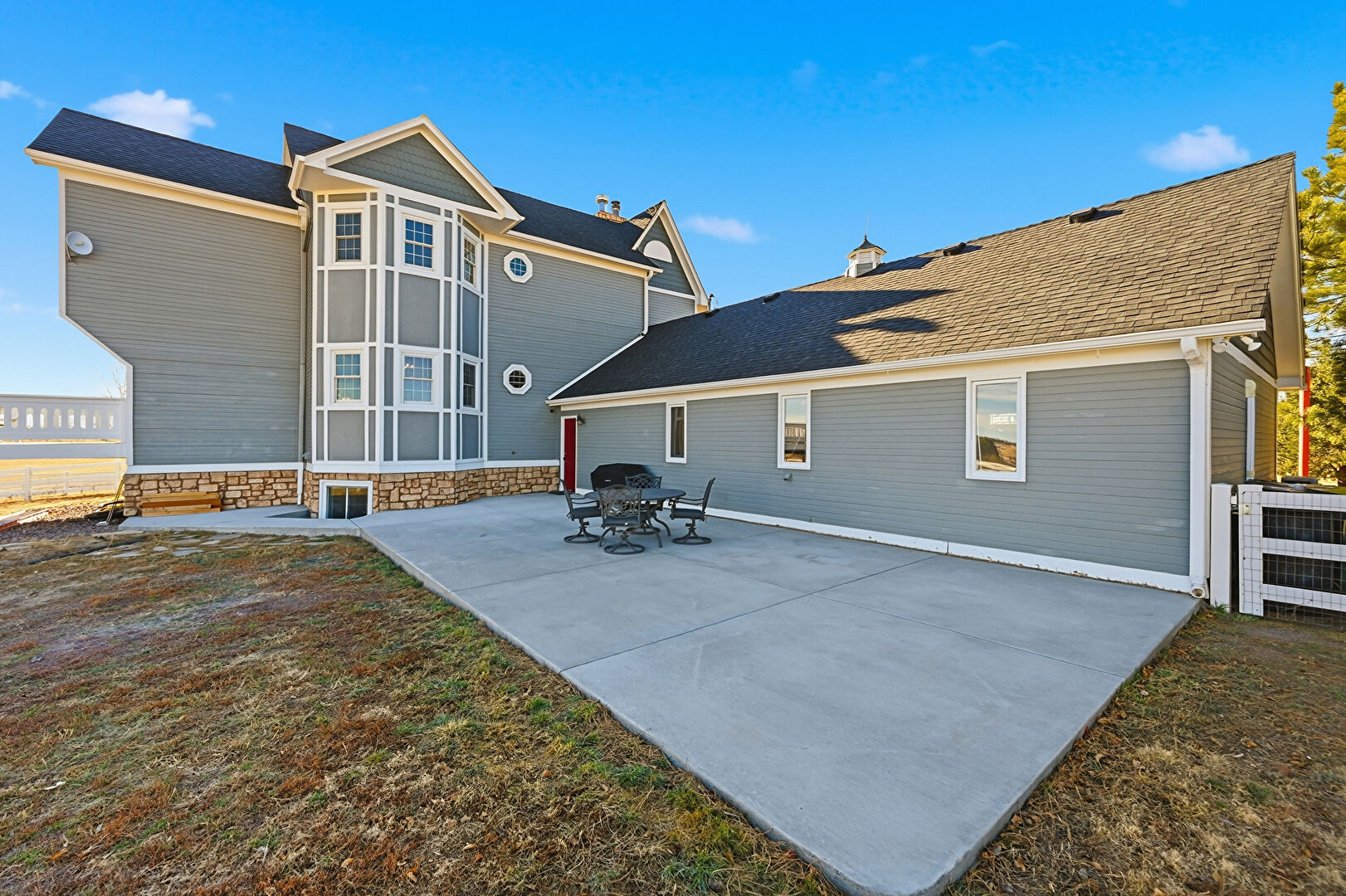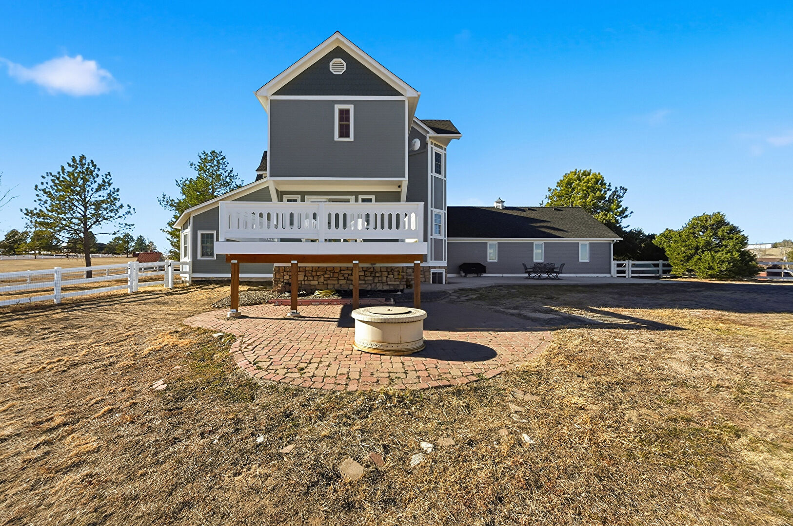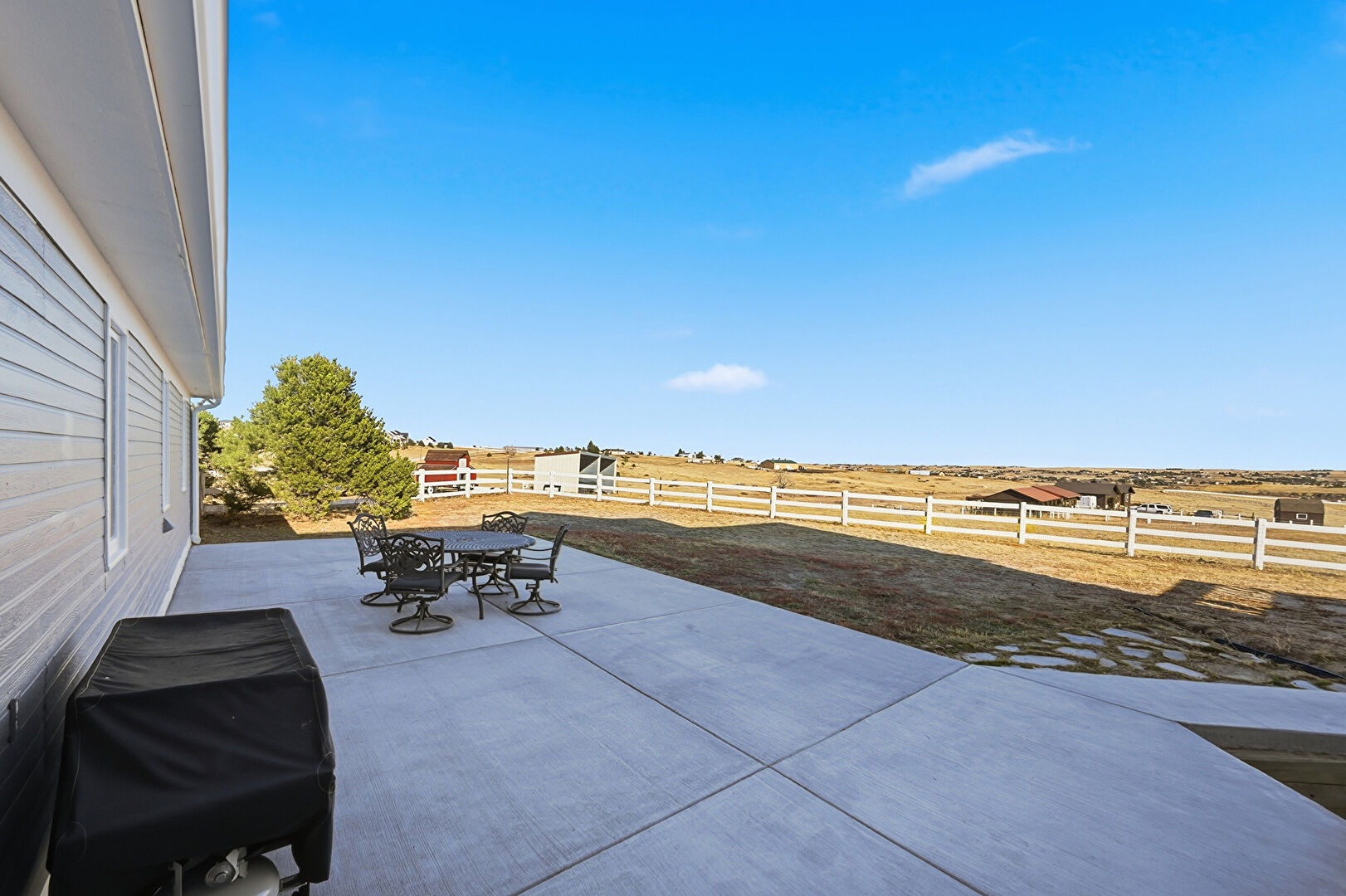 Fence, Lawn, Outdoor Dining Area, Patio, Rural View, Grill, Outdoor Dining Area
