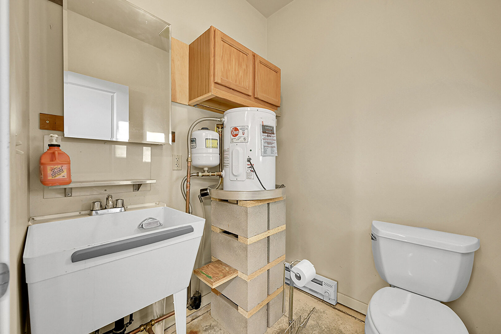 Baseboard Radiator, Drywall, Half Bathroom, Water Expansion Tank, Water Heater, Vanity