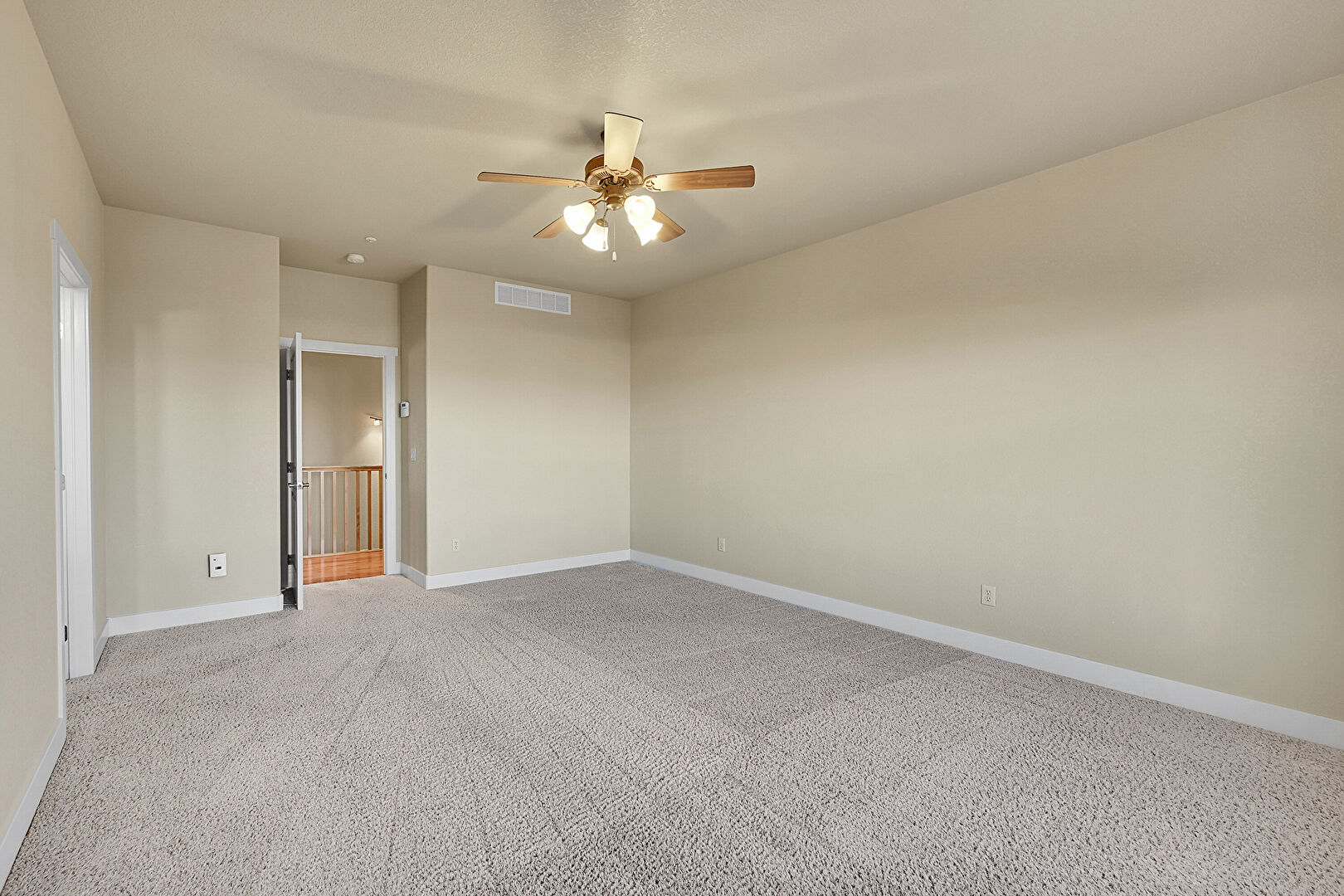 Baseboards Wall, Carpet, Ceiling Fan, Drywall, Natural Light, Textured Wall, Vent, Carpet, Drywall, Vent