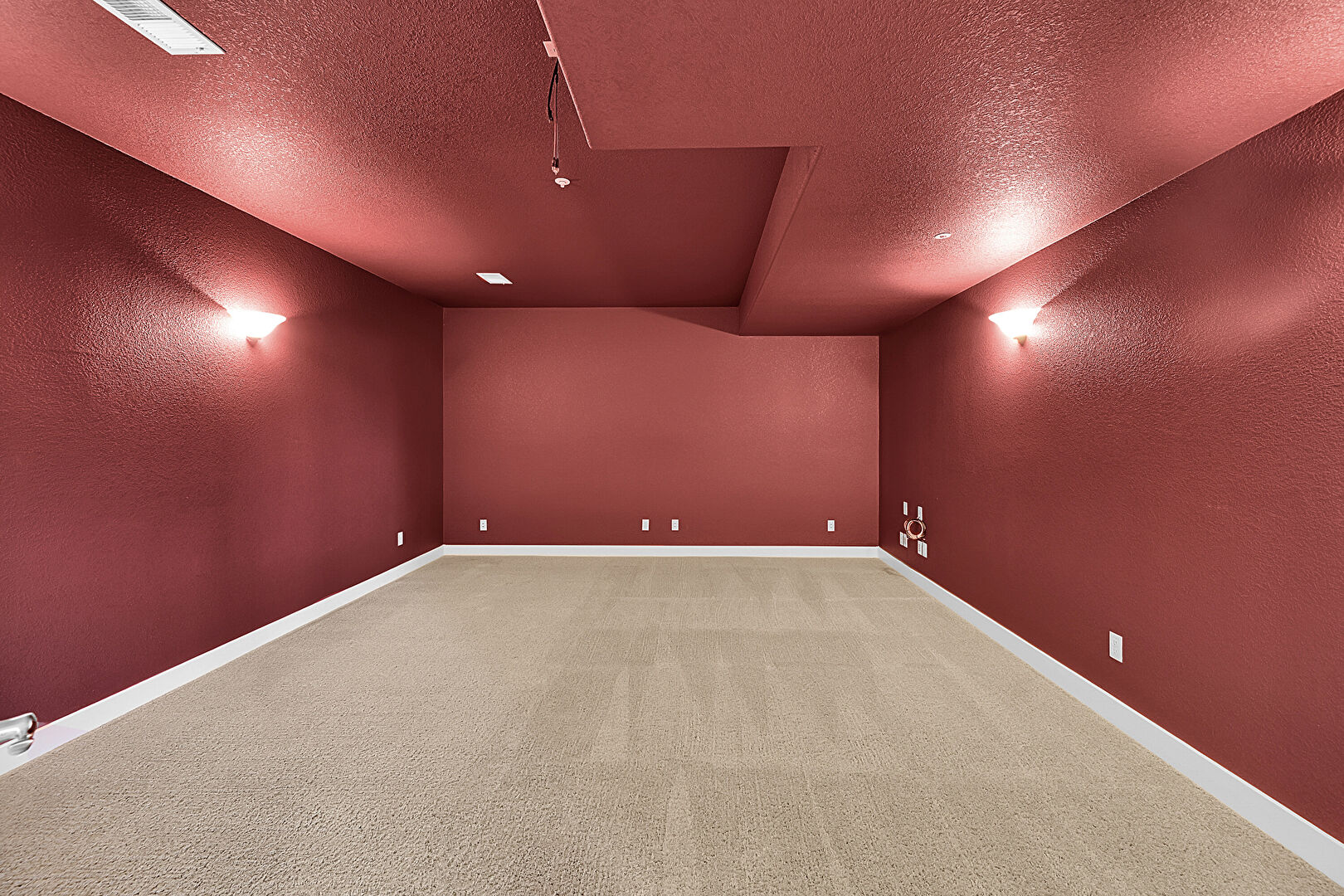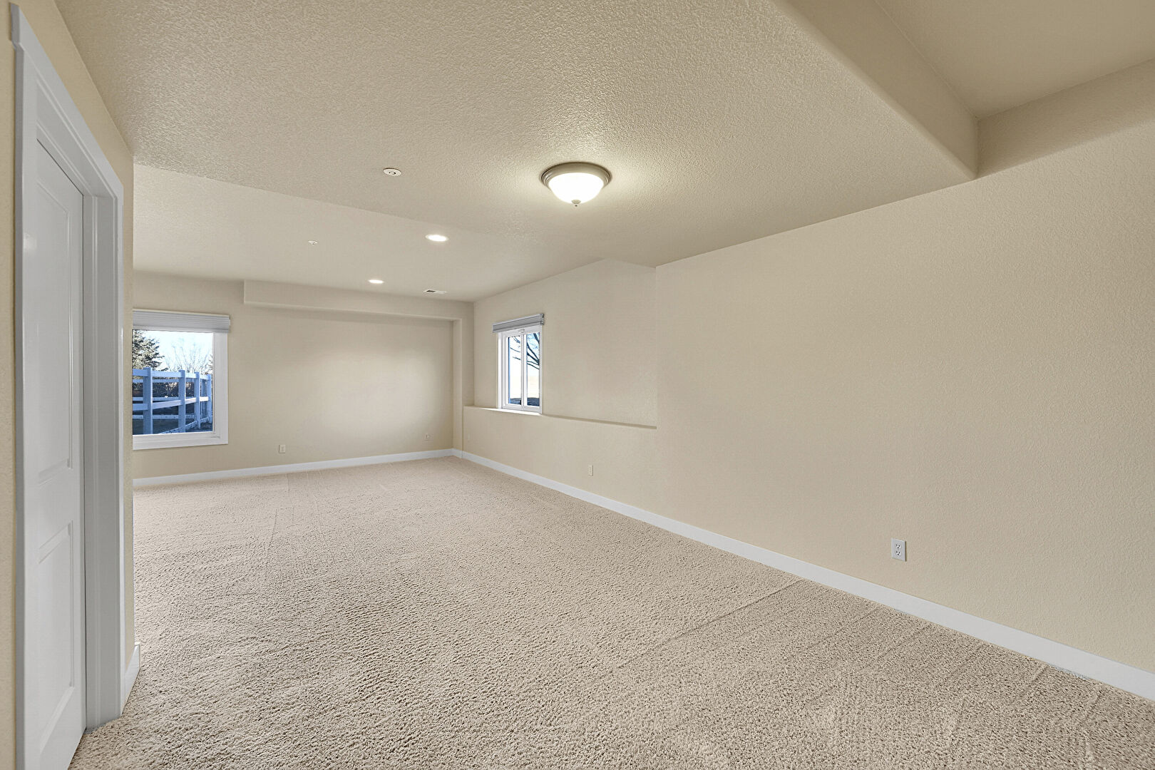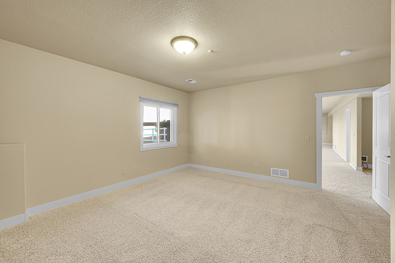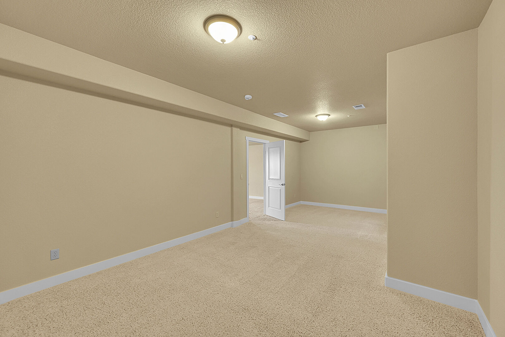 Baseboards Wall, Basement, Carpet, Textured Ceiling, Vent, Drywall