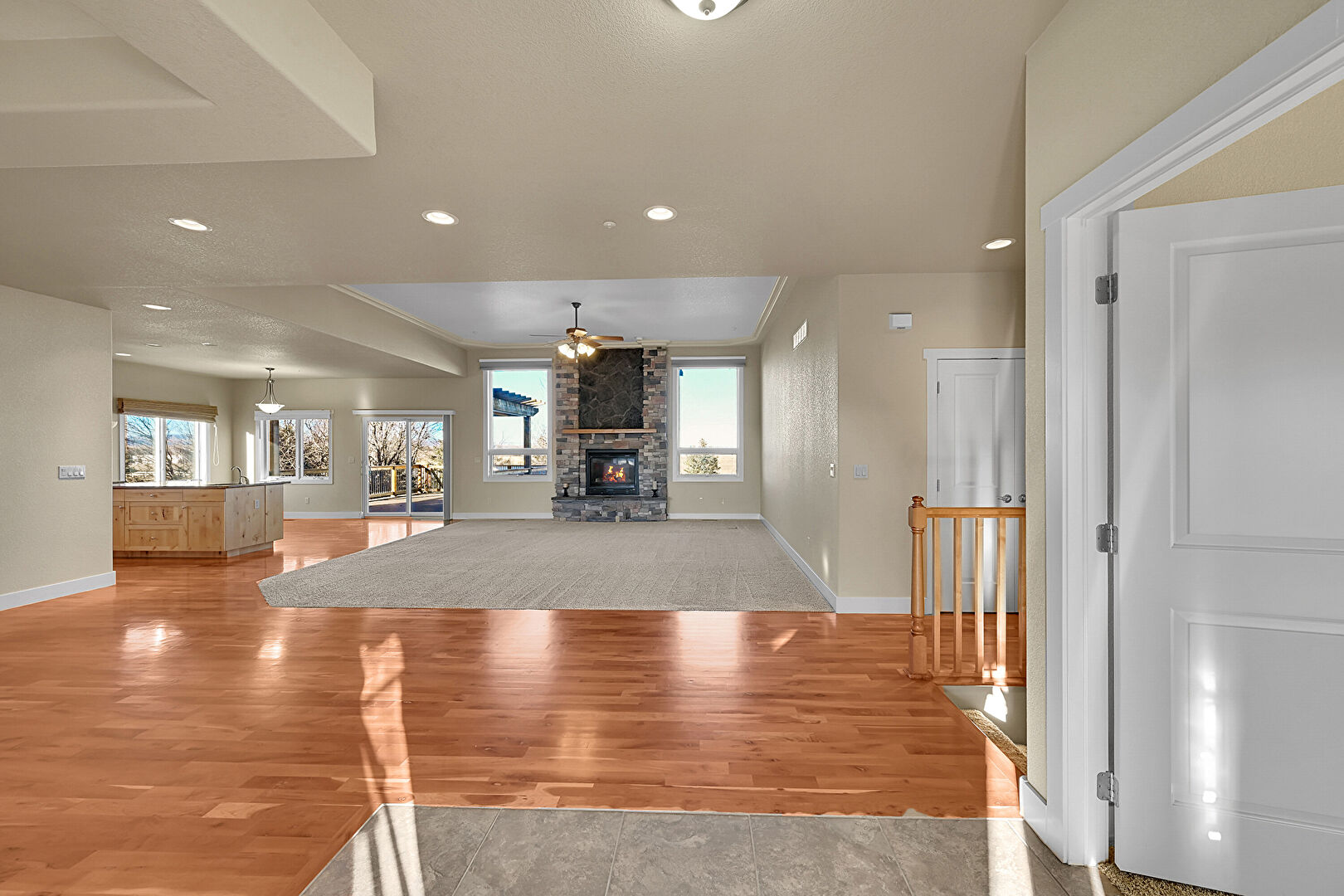 Baseboards Wall, Ceiling Fan, Drywall, Fireplace, Natural Light, Recessed Lighting, Wood Finish Floor