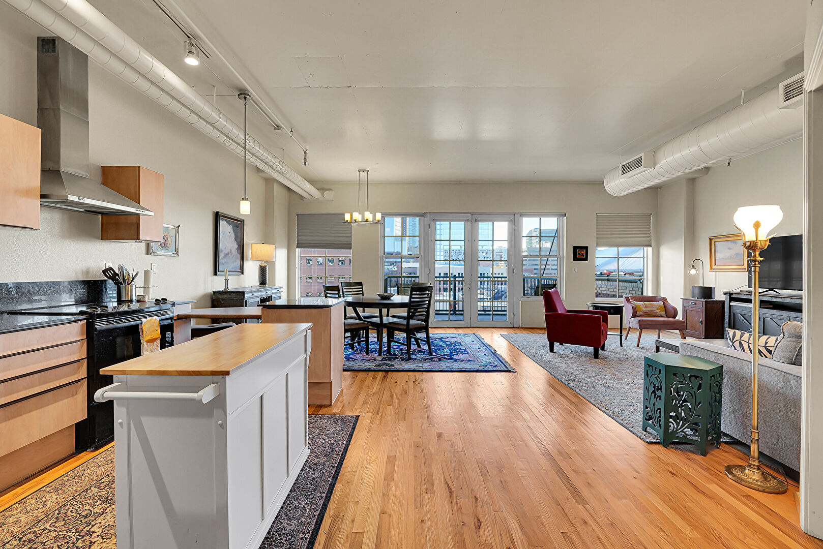 Butcher Block Countertops, Drywall, Fire Extinguisher, Flat Panel Cabinets, High Ceiling, Kitchen Bar, Kitchen Island, Kitchen Peninsula, L Shaped Kitchen, Multiple Kitchen Islands, Natural Light, Notable Chandelier, Open Shelves, Opens To Living Area, Pendant Lighting, Shaker Cabinets, Stone Countertops, Track Lighting, Vent, Wood Finish Floor, Flat Panel Cabinets, Natural Light, Notable Chandelier, Opens To Living Area, Stone Countertops
