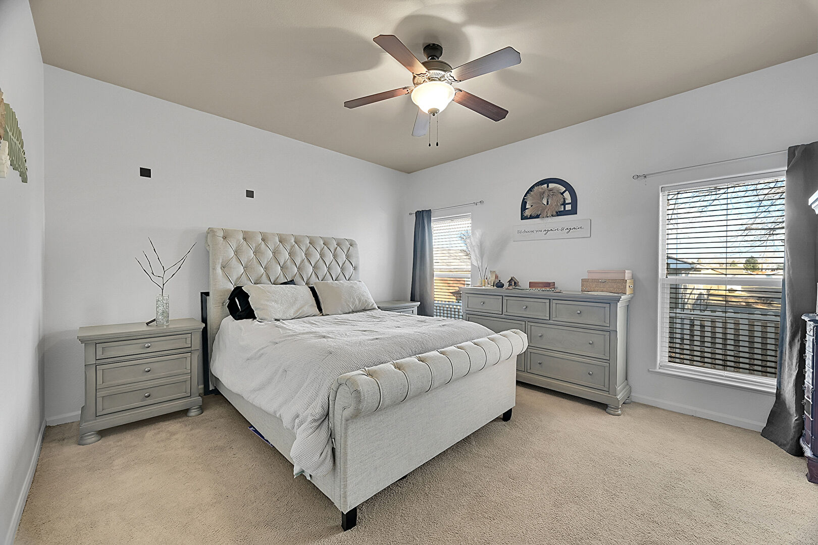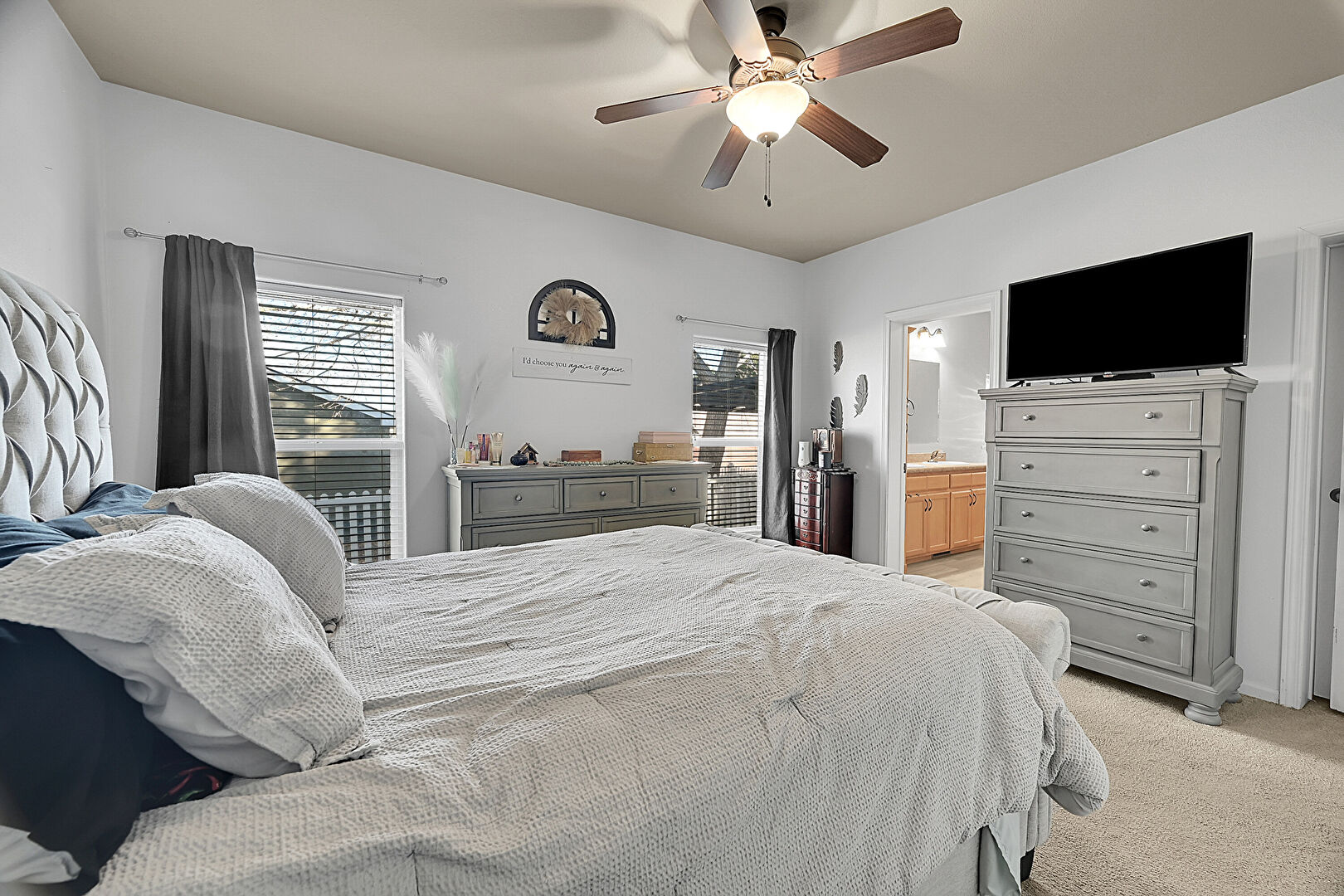 Baseboards Wall, Carpet, Ceiling Fan, Drywall, Ensuite Bathroom, Natural Light, Baseboards Wall, Carpet, Drywall, Natural Light