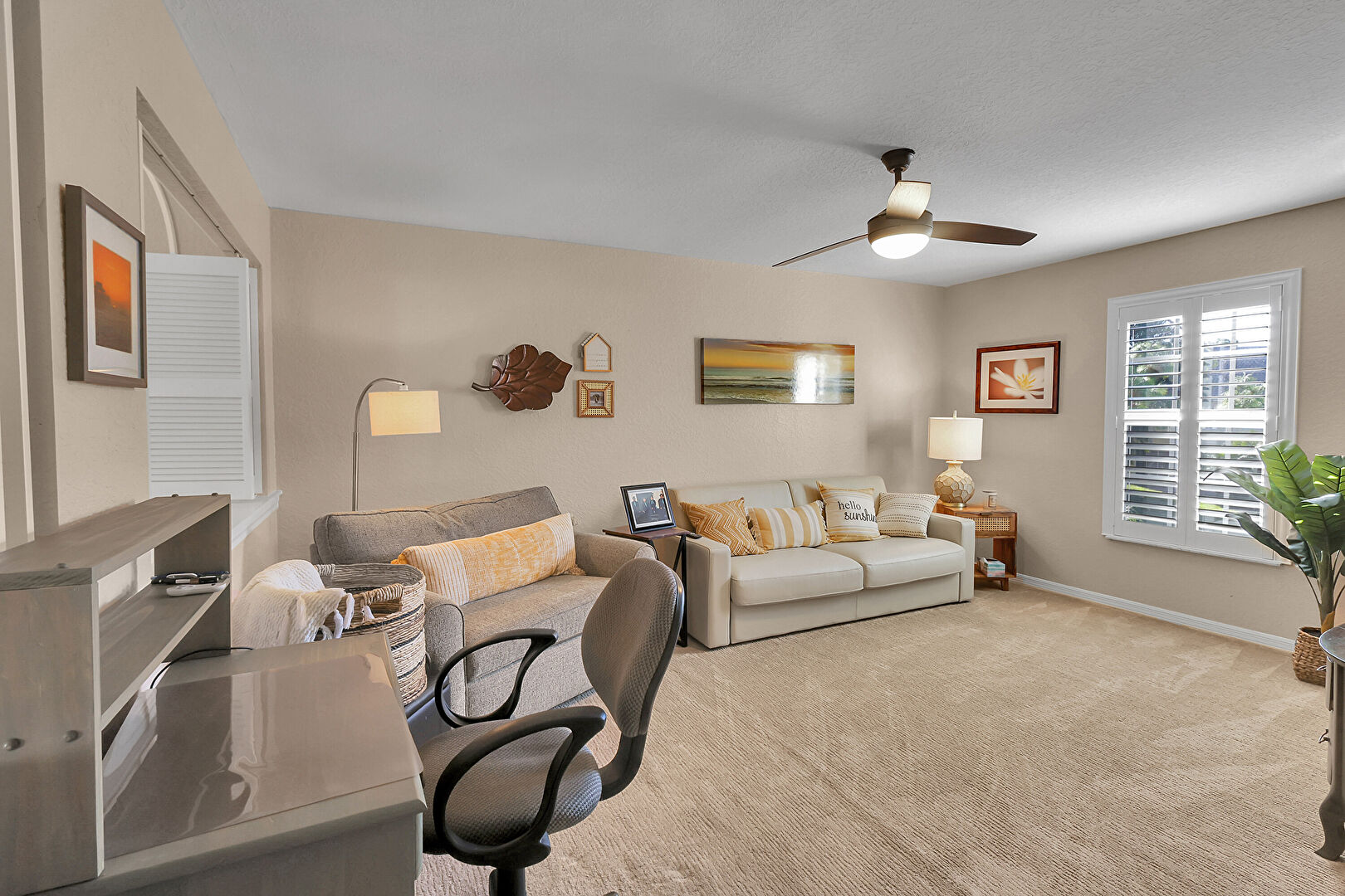 Baseboards Wall, Carpet, Ceiling Fan, Drywall, Natural Light, Office Area, Ceiling Fan, Vent