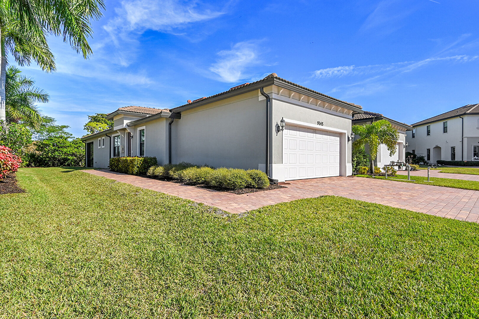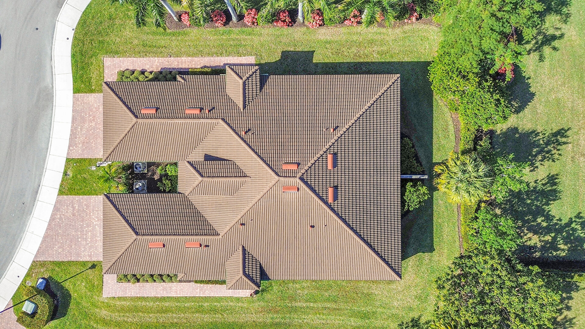 Downspout, Driveway, Garage, Gutters, Lawn, Stucco Siding, Tile Roof, Gutters, Stucco Siding, Tile Roof