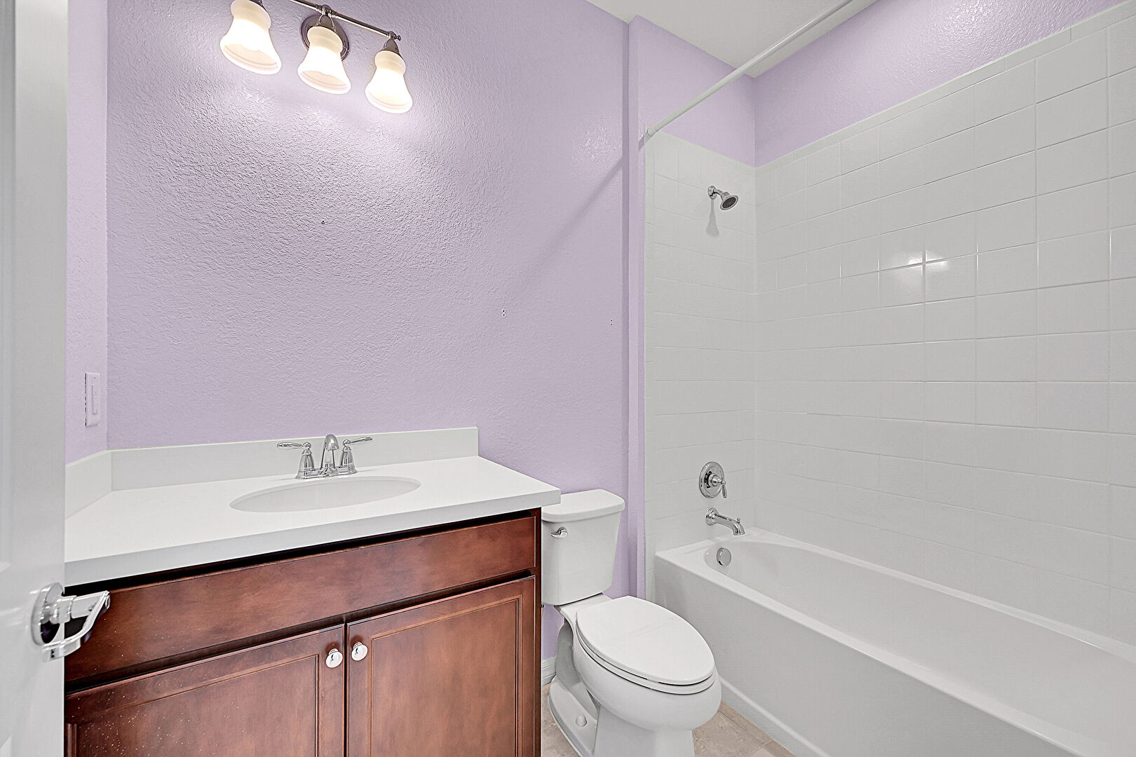Combined Bath Shower, Full Bathroom, Vanity, Textured Wall