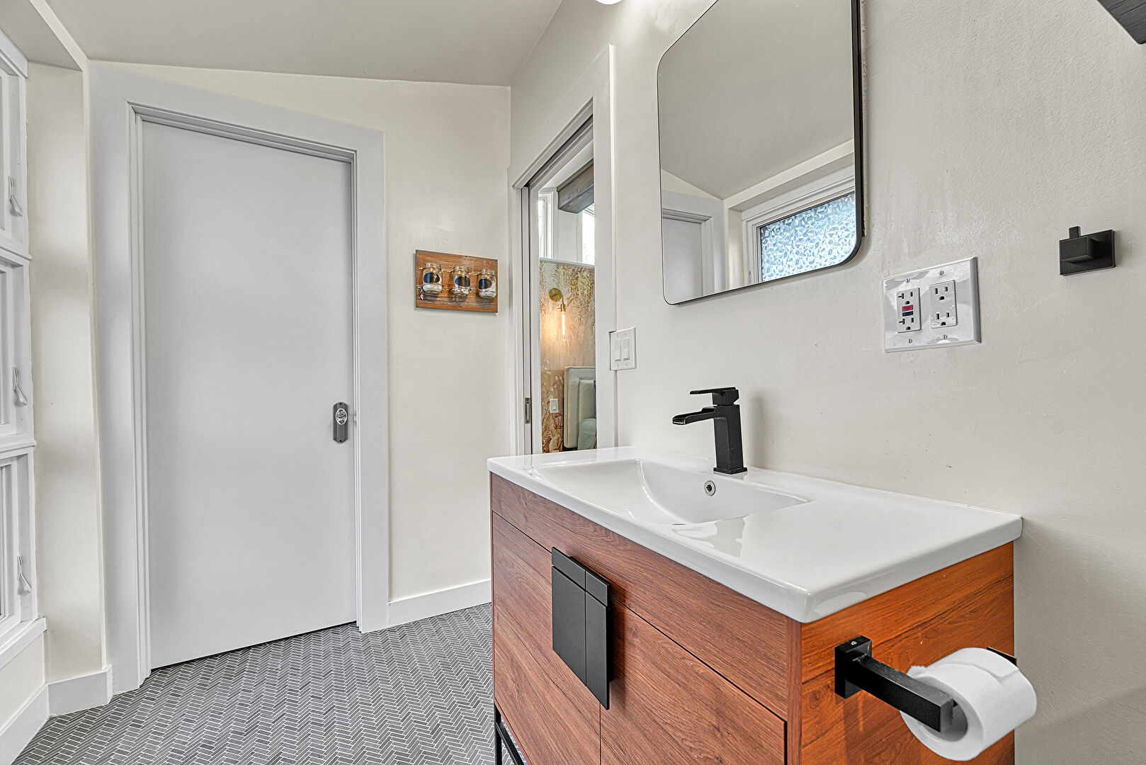 Baseboards Wall, Carpet, Drywall, Ensuite Bathroom, Full Bathroom, Natural Light, Vanity, Wood Finish Floor, Natural Light, Recessed Lighting