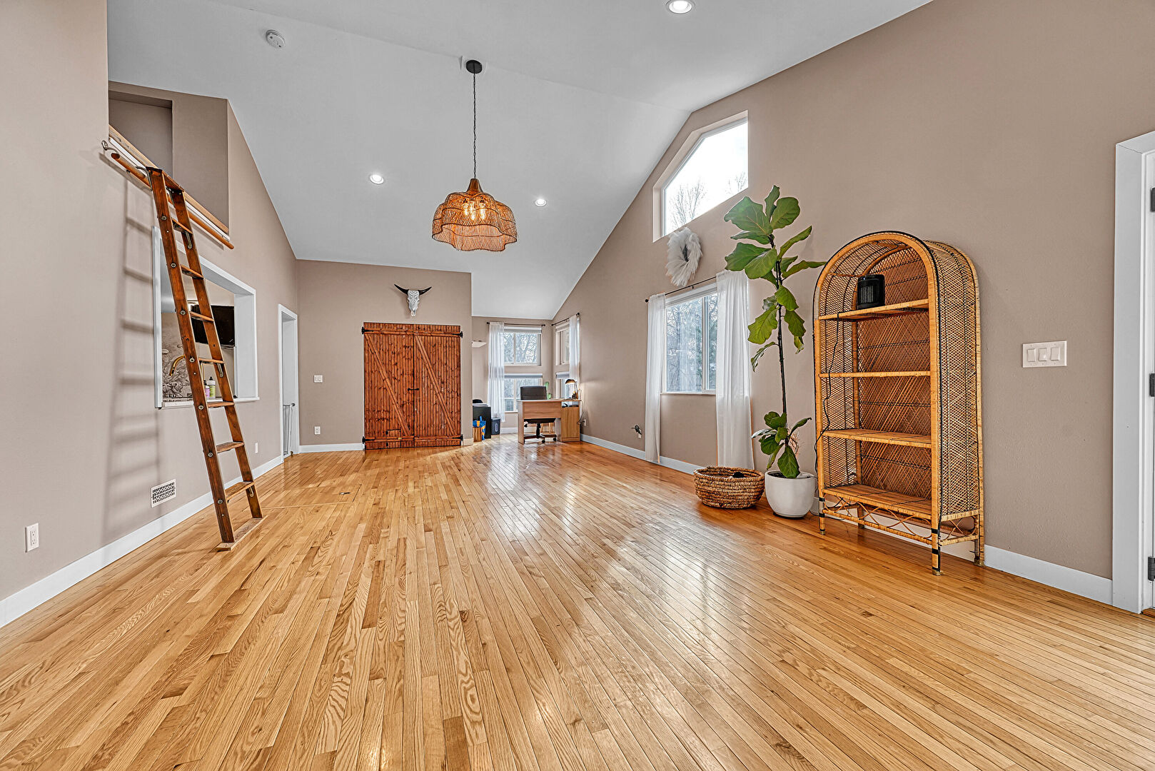 Baseboards Wall, Cathedral Ceiling, Drywall, High Ceiling, Natural Light, Notable Chandelier, Recessed Lighting, Vaulted Ceiling, Vent, Wood Finish Floor, Baseboards Wall, Drywall, Vaulted Ceiling, Wood Finish Floor