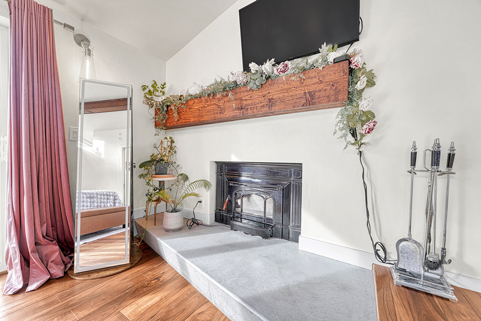Baseboards Wall, Beamed Ceiling, Drywall, Fireplace, Natural Light, Vent, Wood Finish Floor, Beamed Ceiling, Drywall, Fireplace, Vent