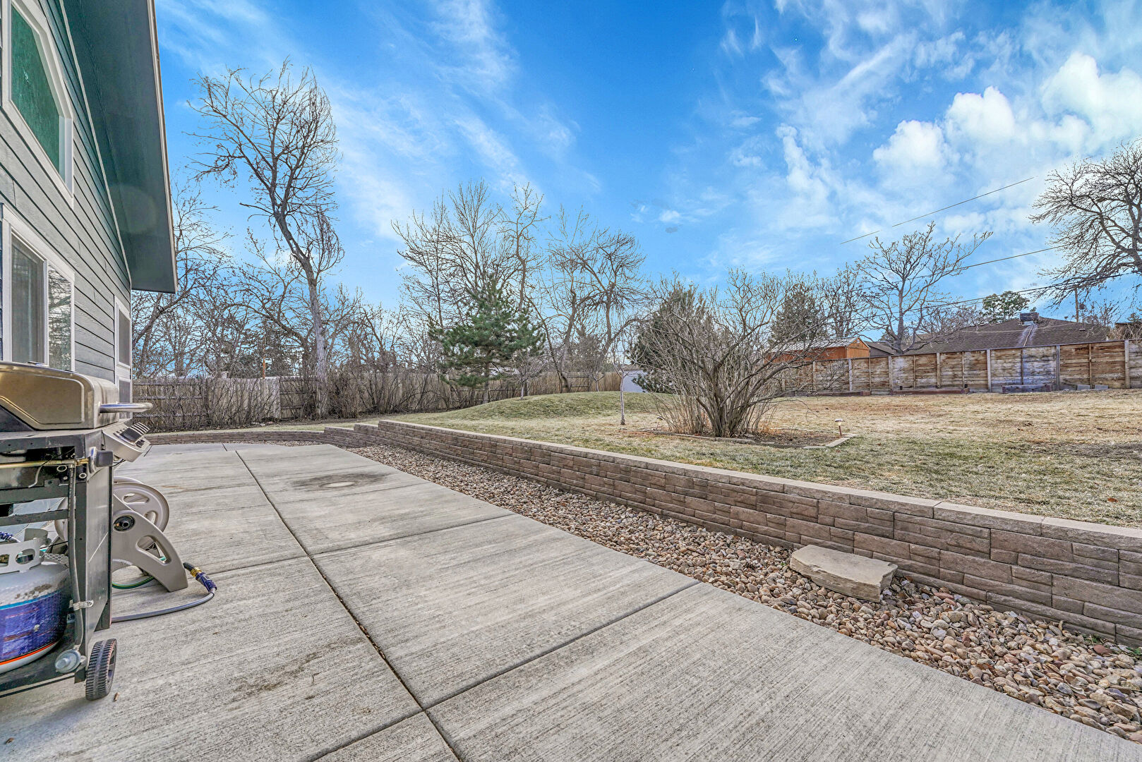 Brick Siding, Chimney, Deck, Downspout, Driveway, Fence, Garage, Gutters, Horizontal Siding, Lawn, Patio, Pergola, Water Meter, Chimney, Driveway, Lawn