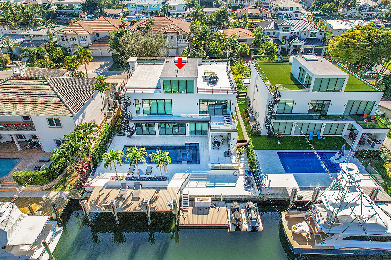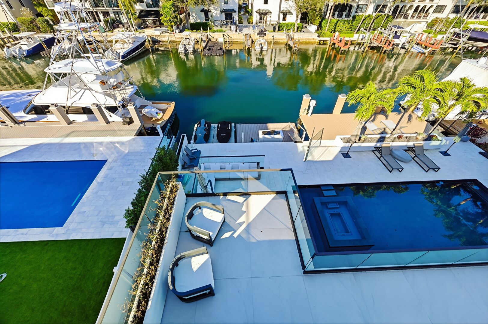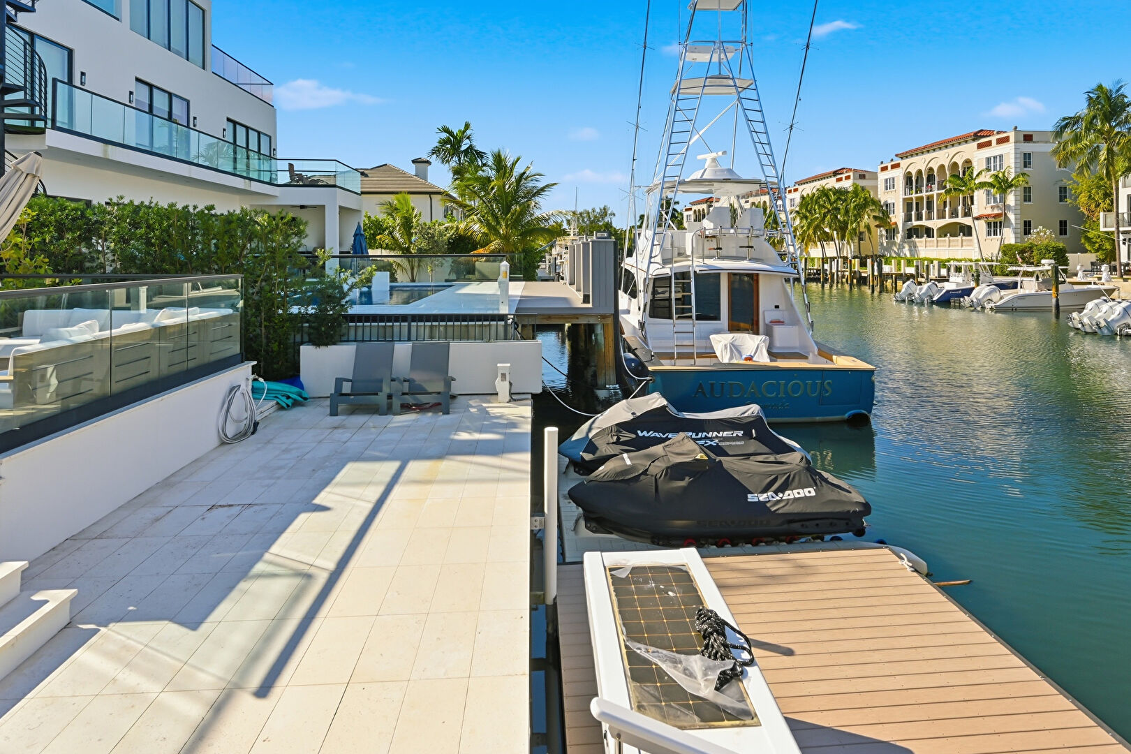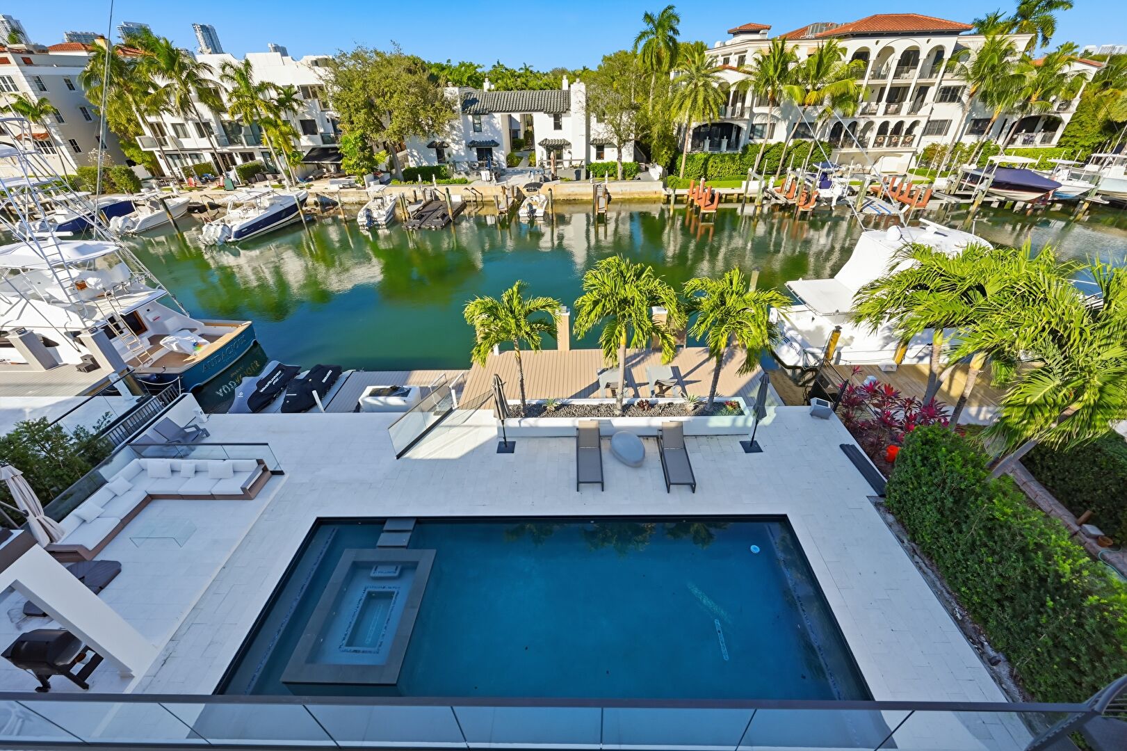 Boat Lift, Canalfront, Ceiling Fan, Dock, Grill, Outdoor Dining Area, Outdoor Living Space, Patio, Pool, Residential View, Water View, Waterfront, Balcony, Hot Tub, Outdoor Kitchen, Patio, Residential View