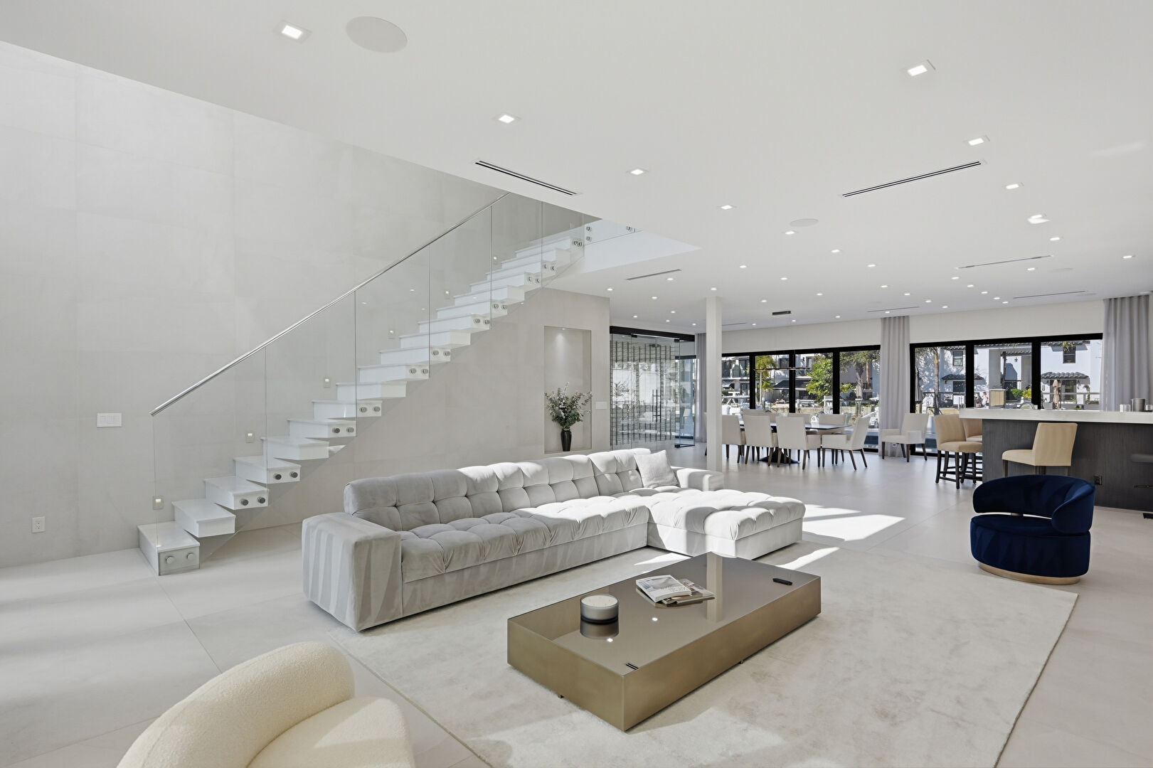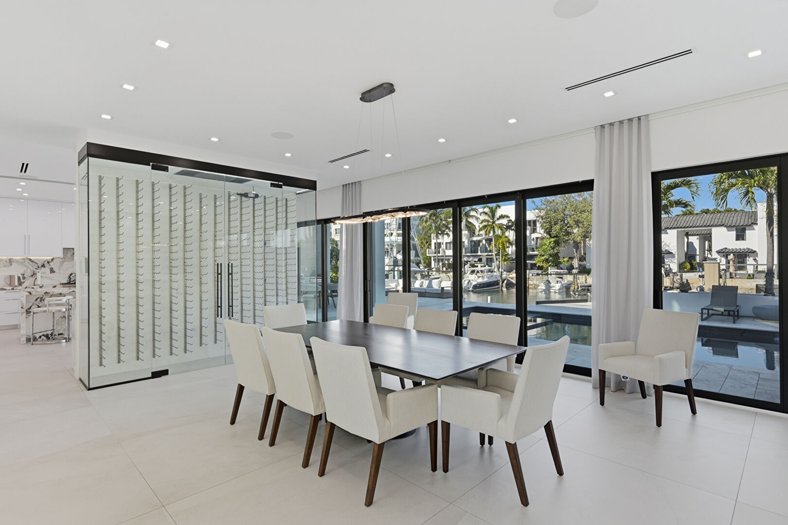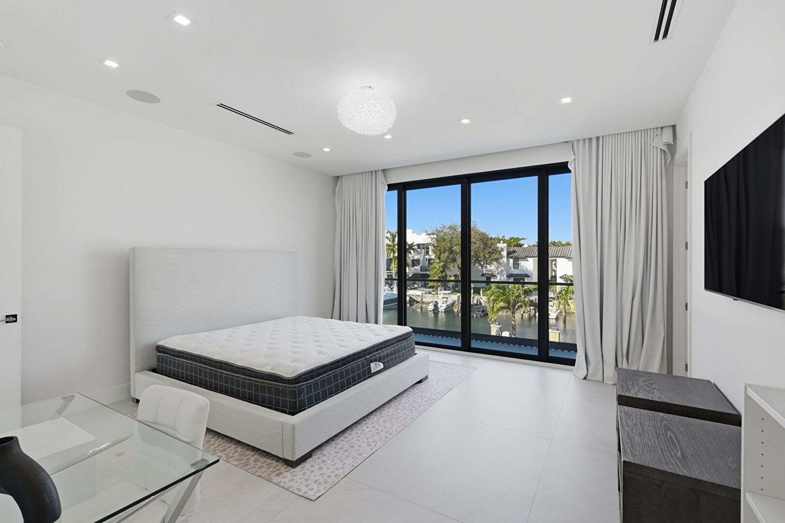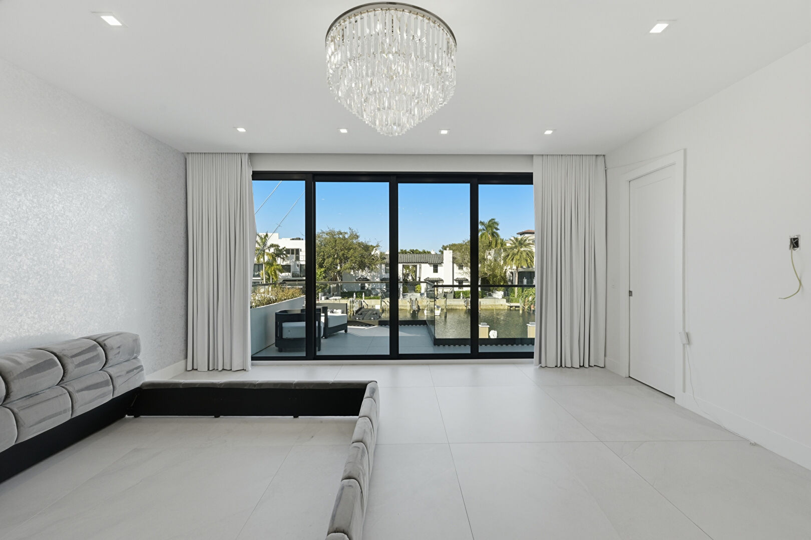 Access To Exterior, Baseboards Wall, Drywall, Floor Ceiling Windows, Natural Light, Notable Chandelier, Recessed Lighting, Residential View, Tile Floor, Vent, Walk In Closet, Water View, Waterfront, Natural Light, Recessed Lighting