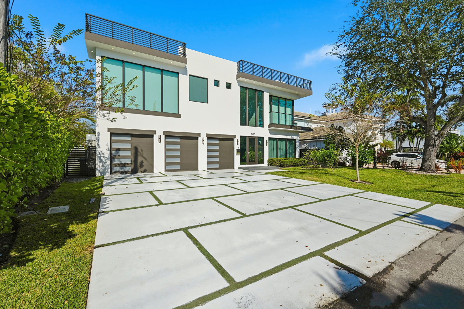 Built In Garage, Driveway, Glass Siding, Lawn, Stucco Siding, Water Meter, Built In Garage, Driveway