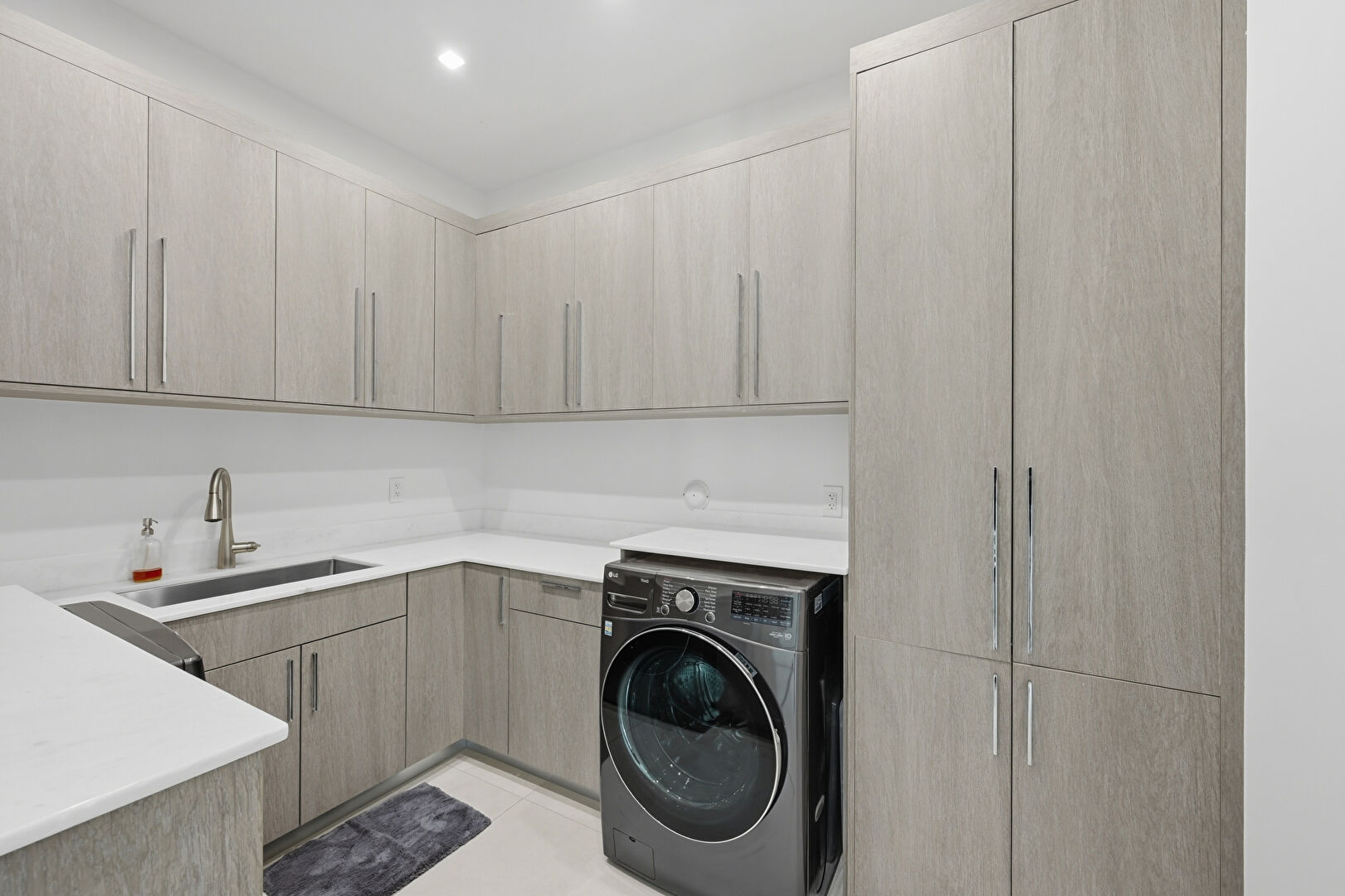 Drywall, Laundry, Tile Floor, Washer Dryer, Laundry, Recessed Lighting