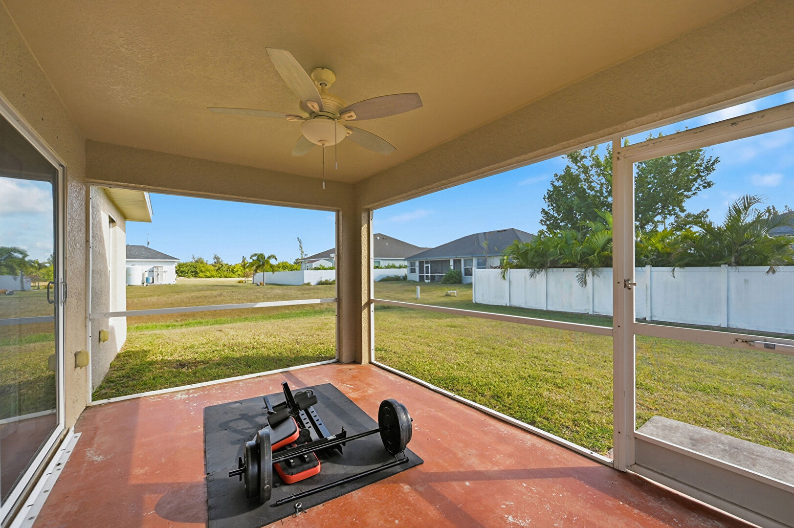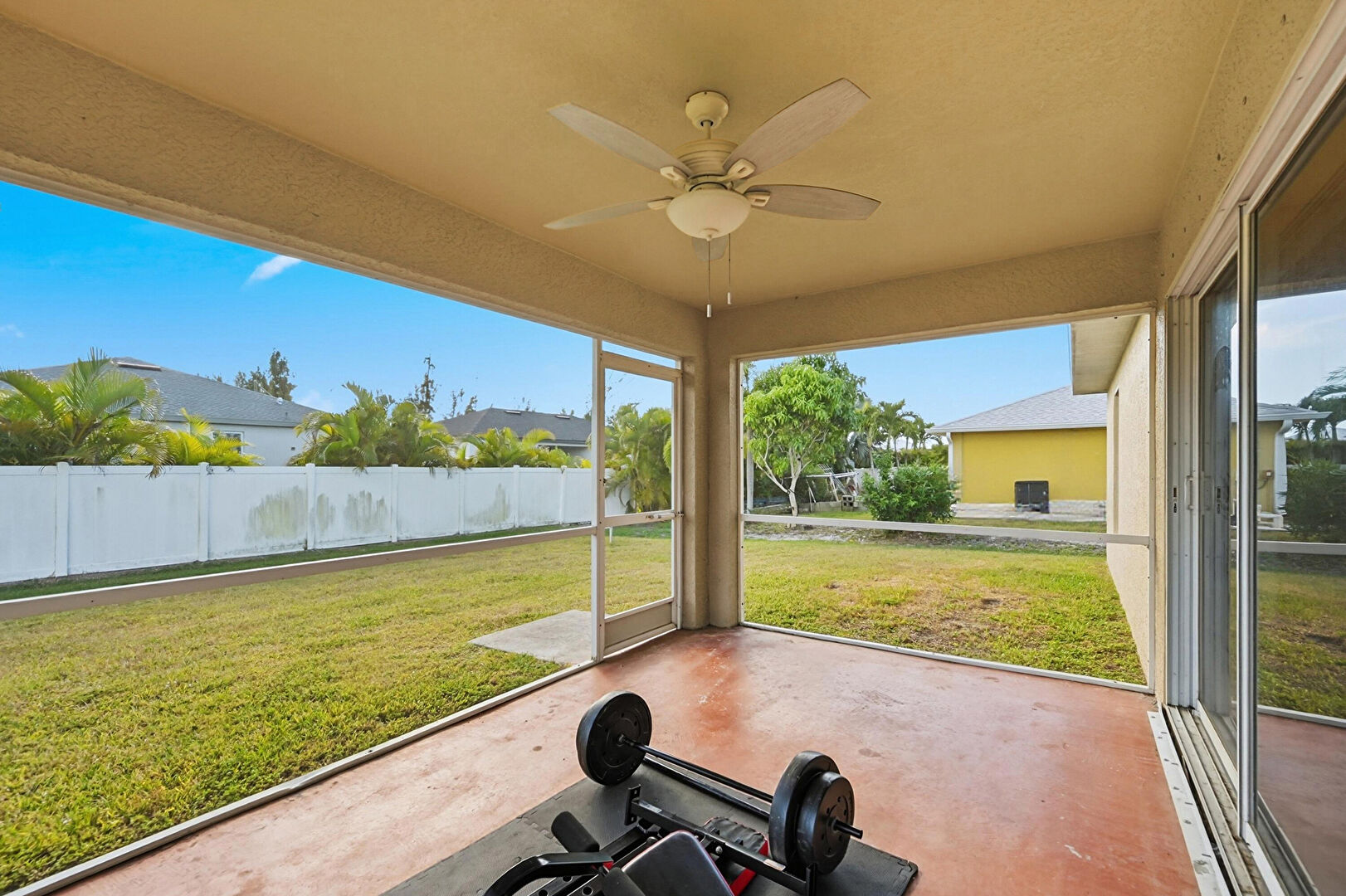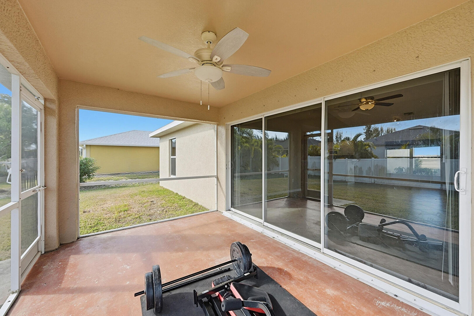 Ceiling Fan, Natural Light, Outdoor Kitchen, Sunroom, Concrete Floor, Patio, Residential View