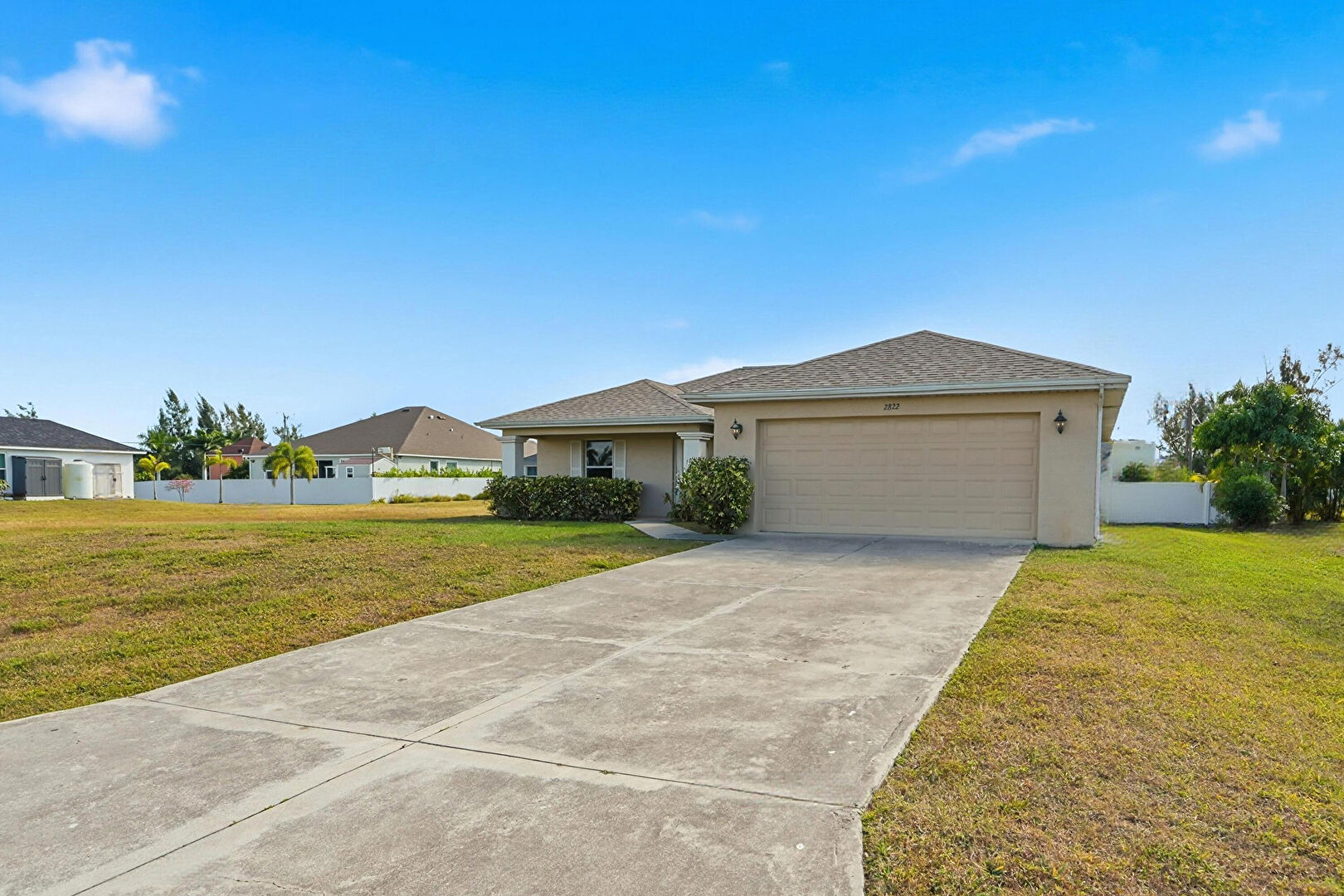 Downspout, Driveway, Fence, Lawn, Shingle Roof, Stucco Siding, Driveway, Stucco Siding