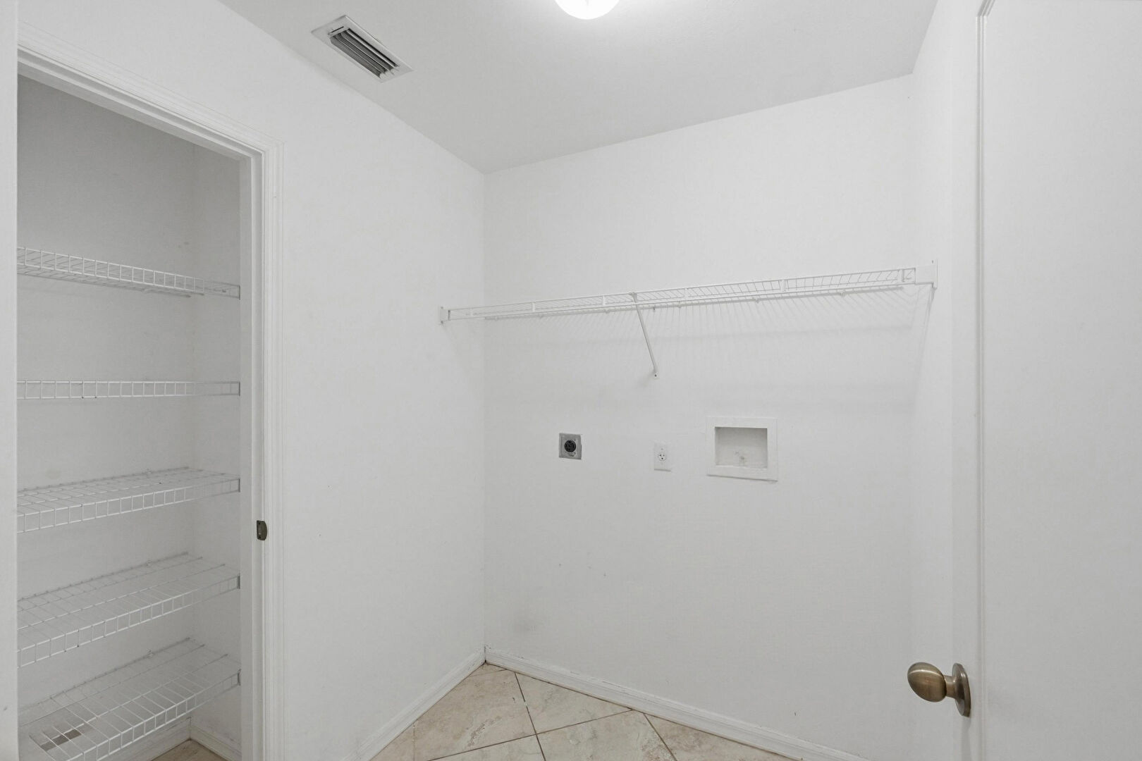 Baseboards Wall, Drywall, Laundry, Tile Floor, Vent, Washer Hookup, Electric Dryer Hookup