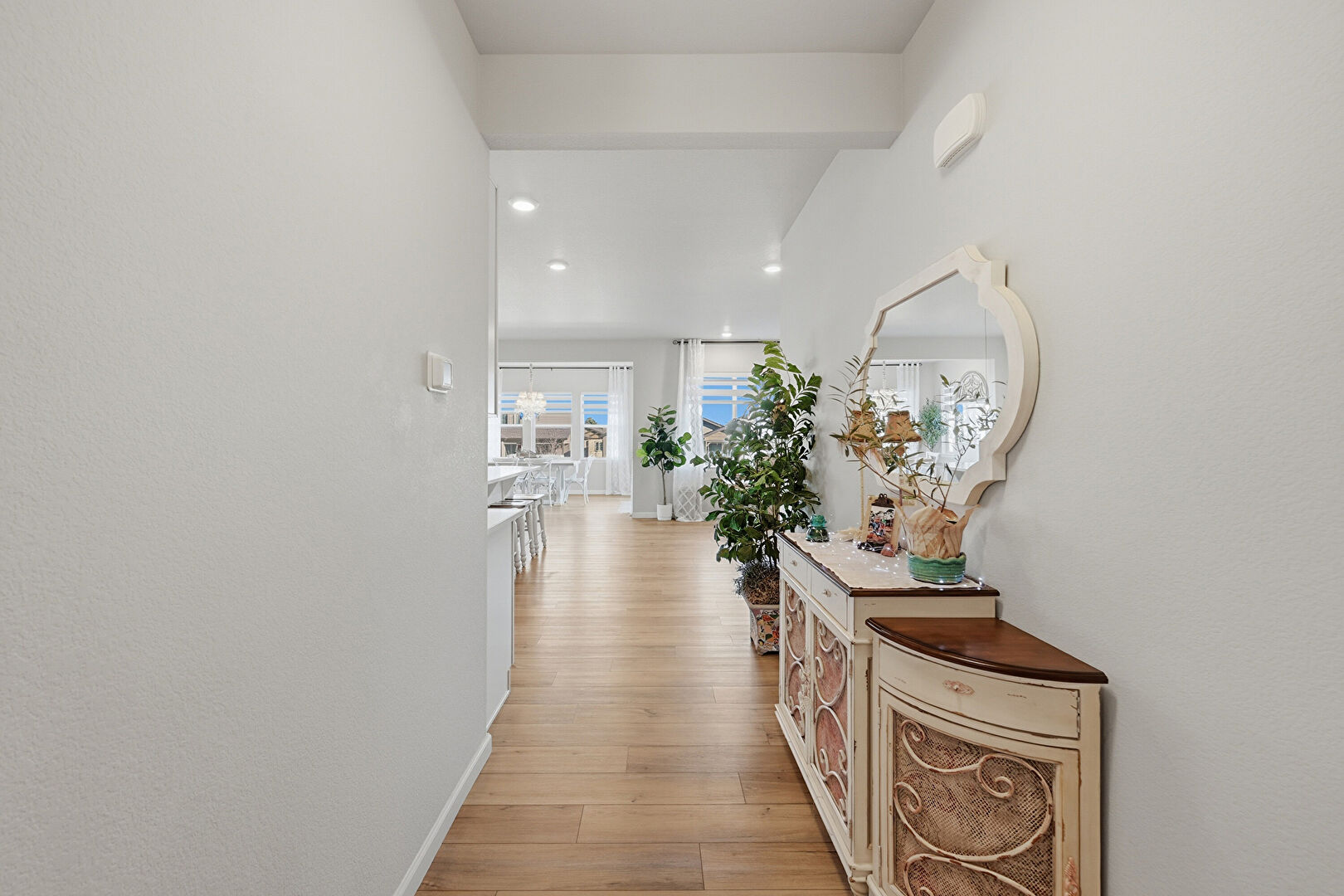 Baseboards Wall, Natural Light, Recessed Lighting, Textured Wall, Wood Finish Floor