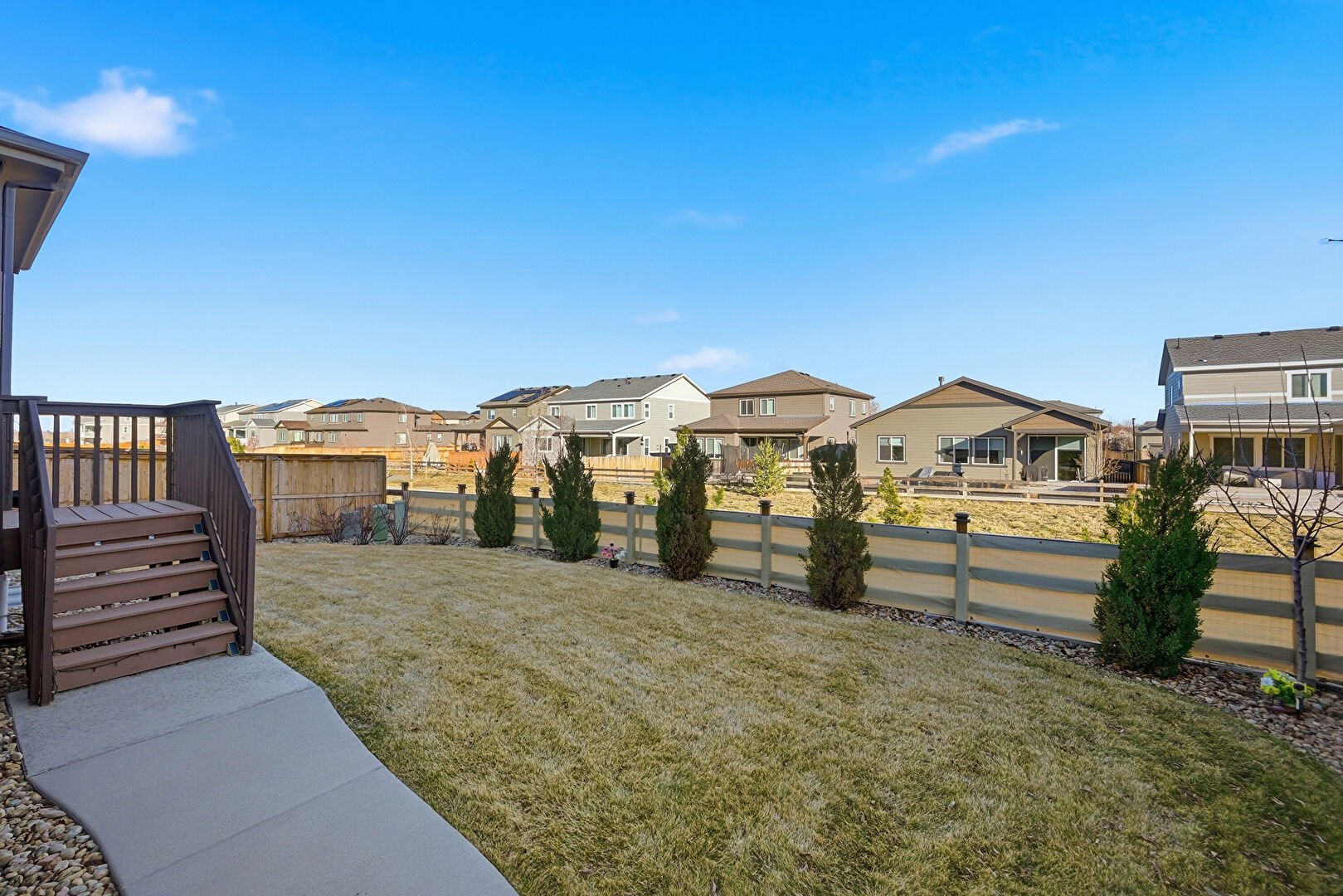 Deck, Lawn, Residential View, Stairs, Fence