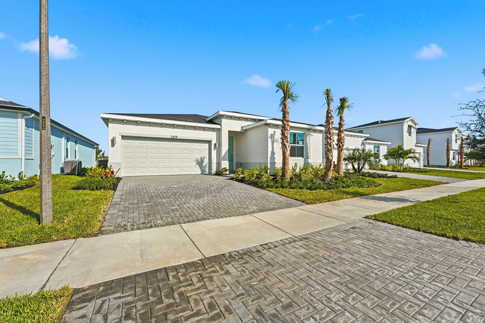 Driveway, Lawn, Stucco Siding, Driveway, Stucco Siding