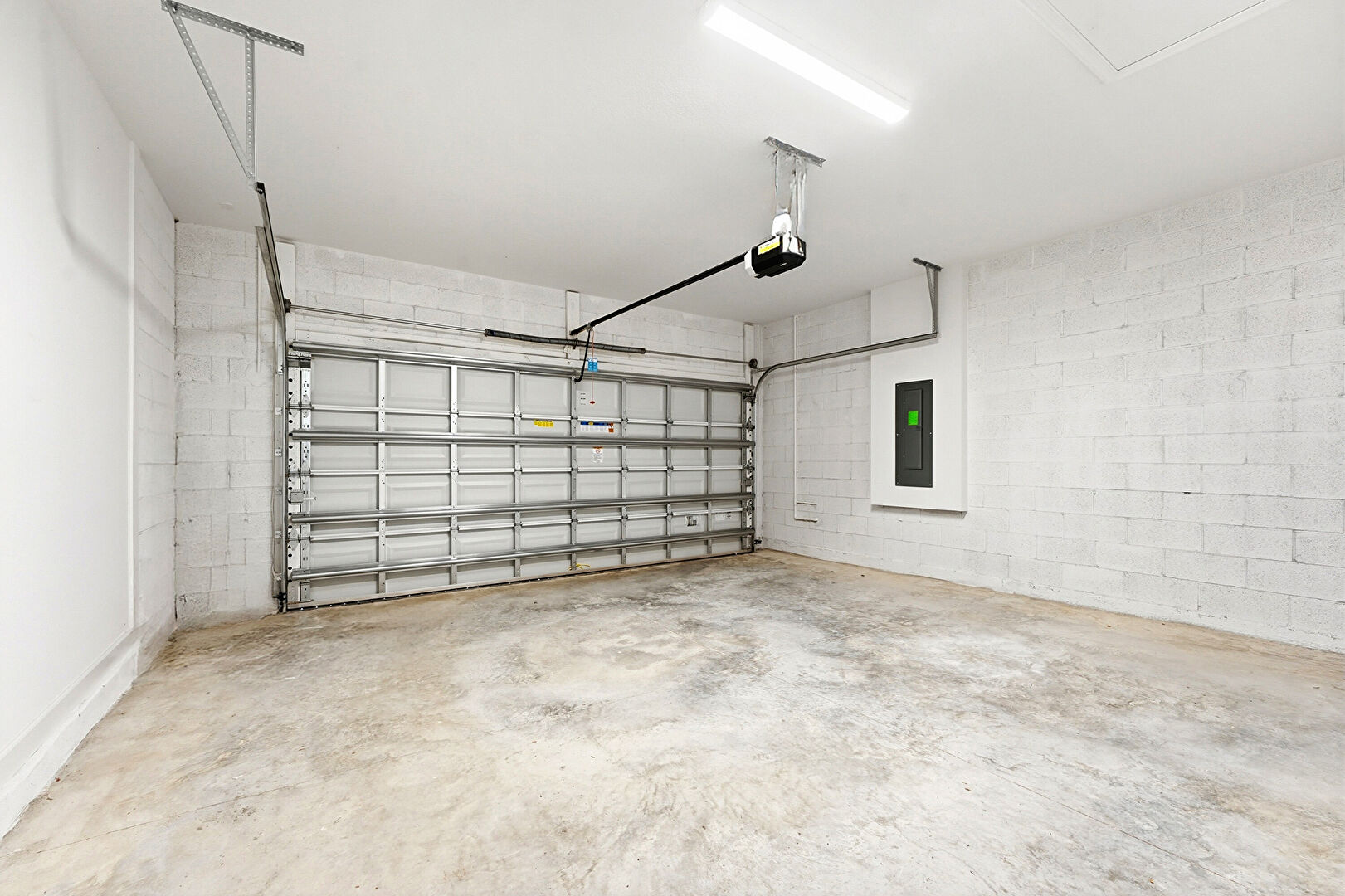 Concrete Block Wall, Drywall, Electric Panel, Garage Door Opener, Garage