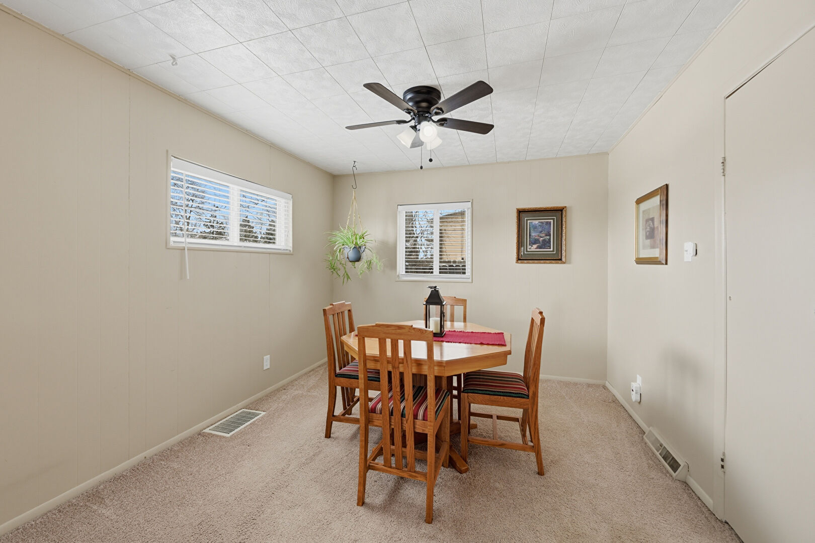 Baseboards Wall, Carpet, Ceiling Fan, Drywall, Natural Light, Vent, Baseboards Wall, Natural Light