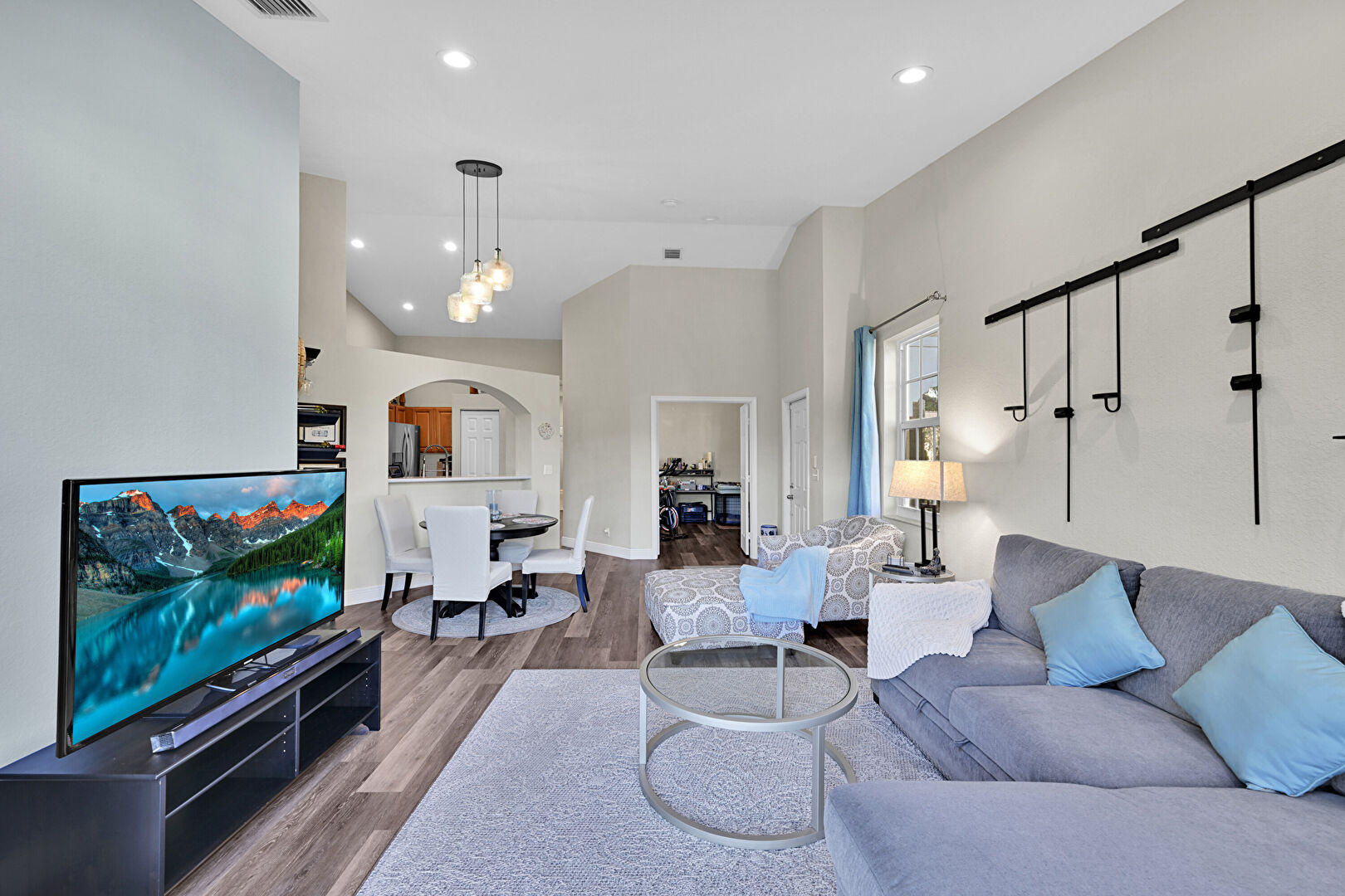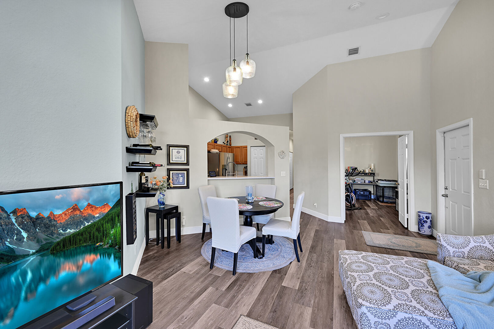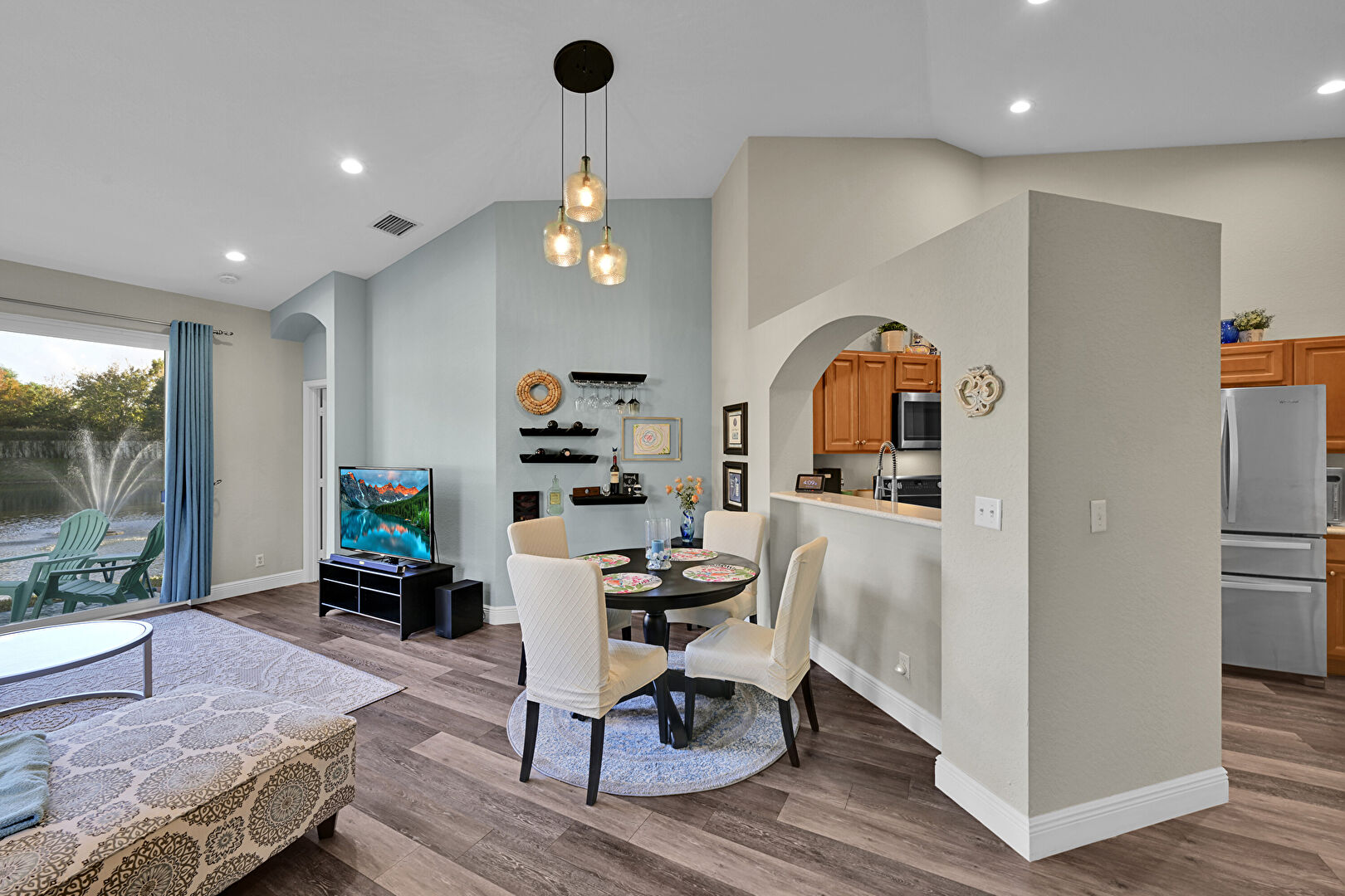 Arched Walkways, Baseboards Wall, Drywall, High Ceiling, Natural Light, Notable Chandelier, Recessed Lighting, Vaulted Ceiling, Vent, Waterfront, Wood Finish Floor, Arched Walkways, High Ceiling, Recessed Lighting, Vaulted Ceiling
