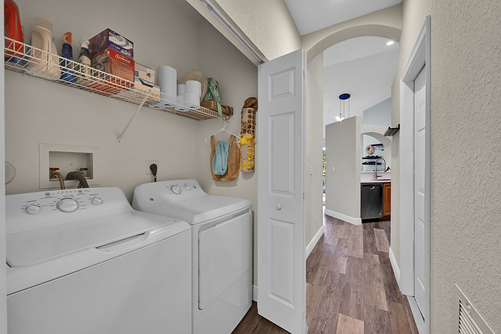 Arched Walkways, Baseboards Wall, Laundry, Recessed Lighting, Textured Wall, Washer Hookup, Wood Finish Floor, Electric Dryer Hookup