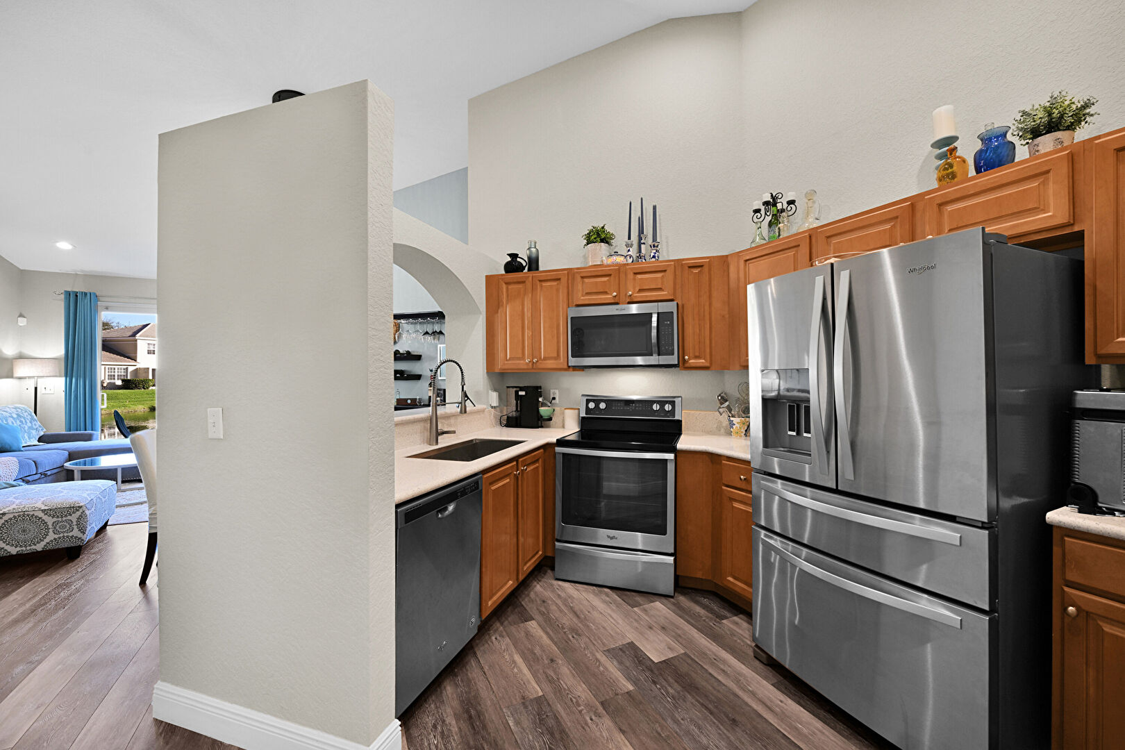 Arched Walkways, Baseboards Wall, Drywall, High Ceiling, Natural Light, Recessed Lighting, Vaulted Ceiling, Vent, Waterfront, Wood Finish Floor, Recessed Lighting, Vent