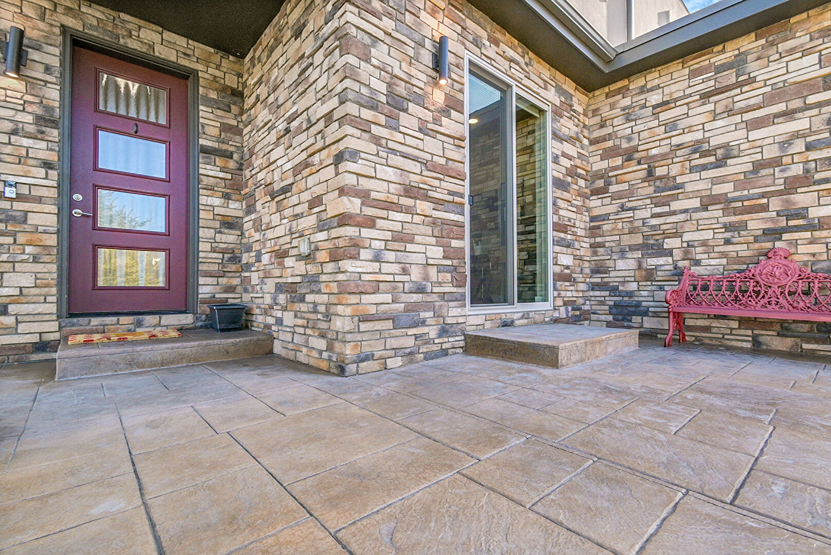 Balcony, Built In Garage, Downspout, Driveway, Fence, Garage, Gutters, Horizontal Siding, Lawn, Patio, Residential View, Rolled Roof, Stone Siding, Stucco Siding, Water Meter, Woods View, Built In Garage, Driveway, Horizontal Siding, Stone Siding, Stucco Siding