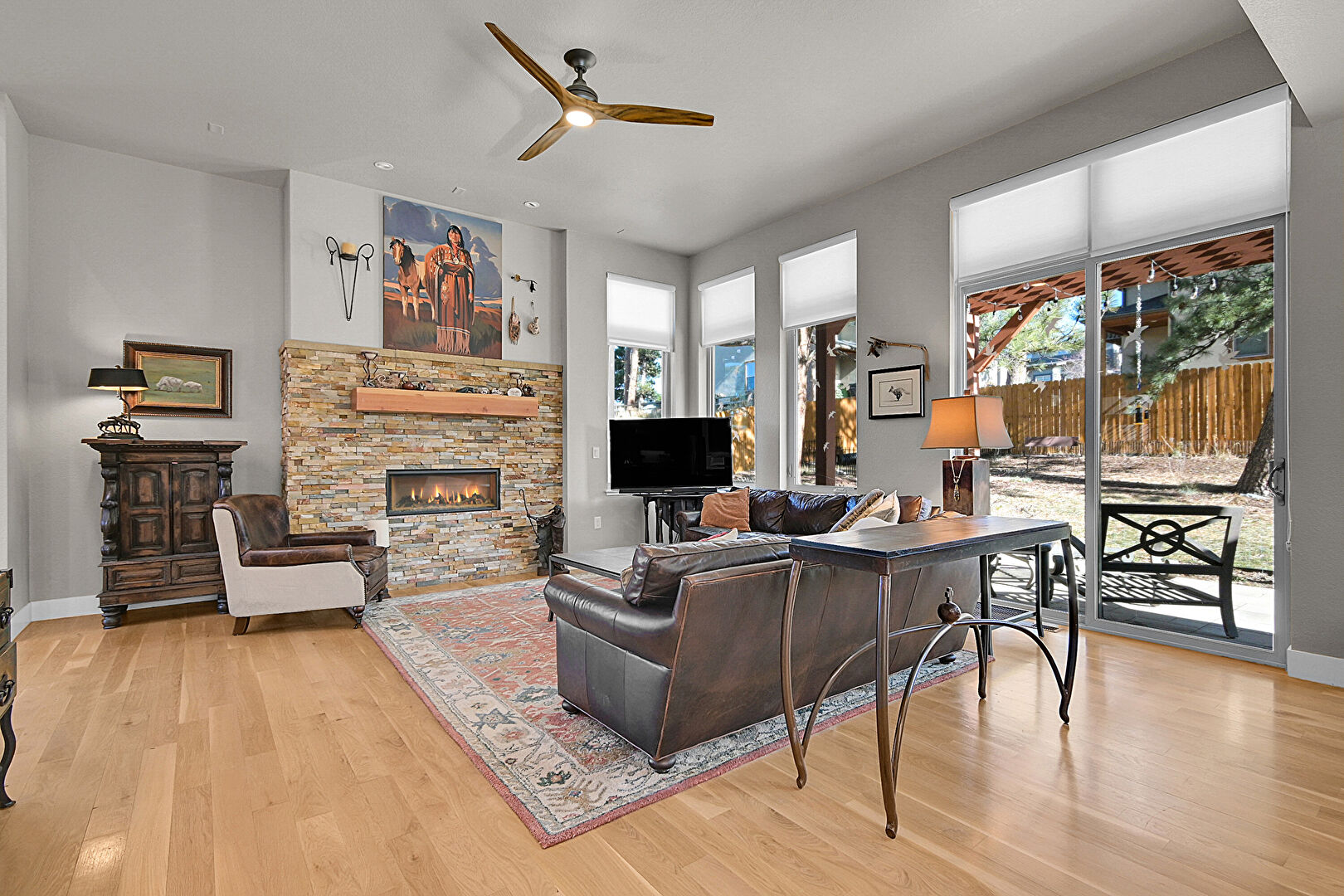Baseboards Wall, Ceiling Fan, Drywall, Fireplace, Natural Light, Wood Finish Floor, Vent, Wood Finish Floor