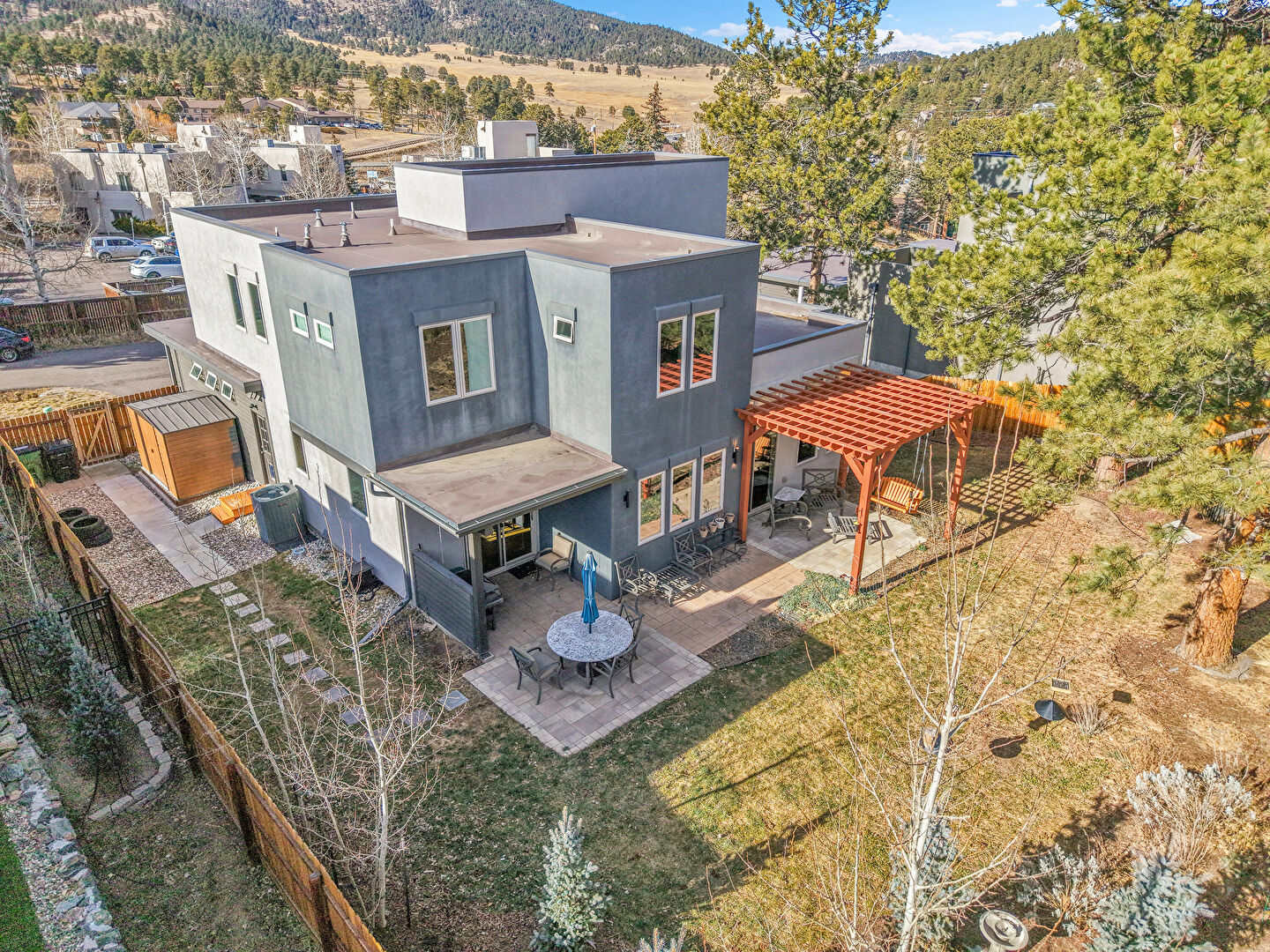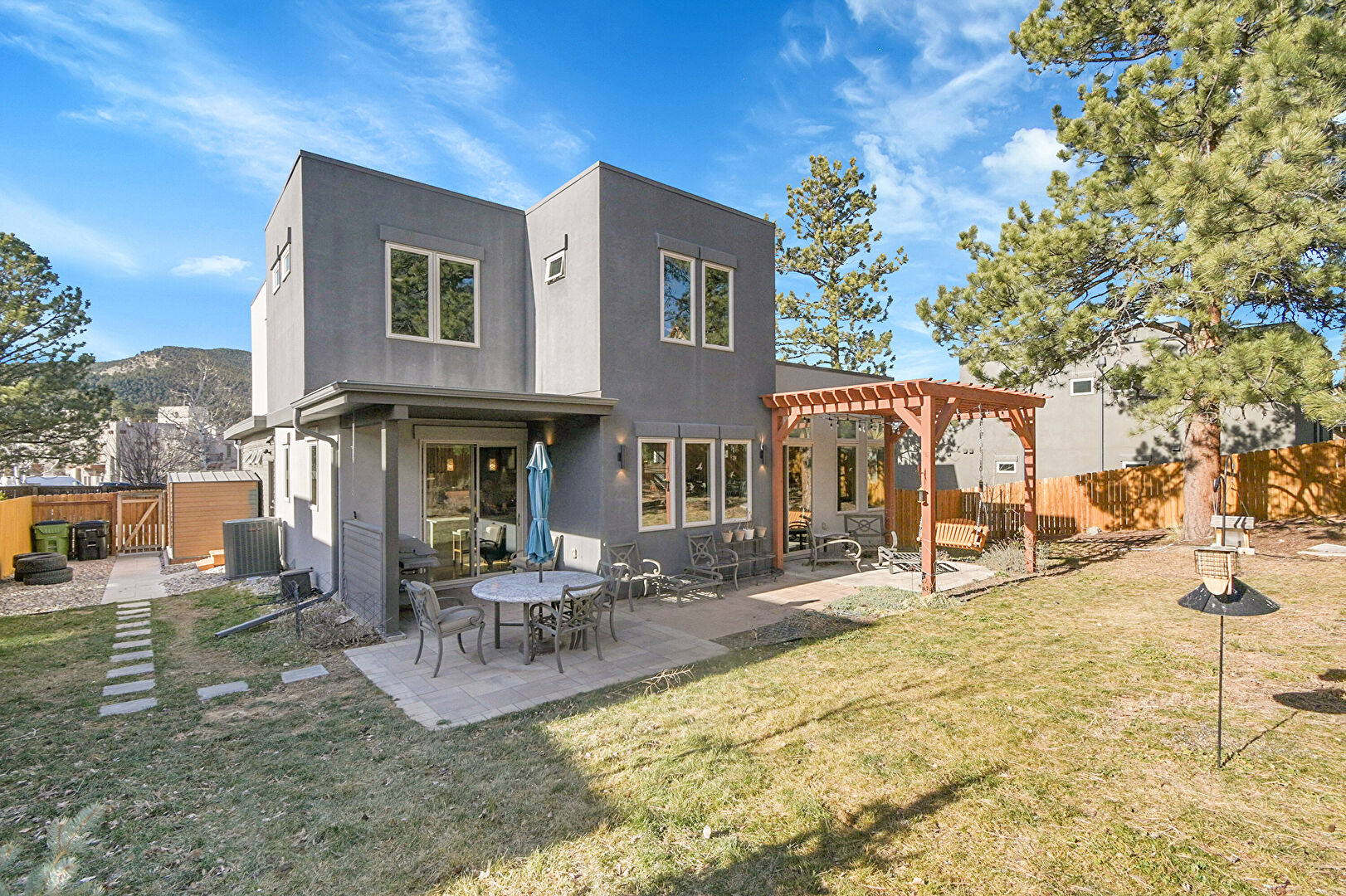 Central Ac, Fence, Lawn, Outdoor Dining Area, Outdoor Structure, Patio, Pergola, Rolled Roof, Stucco Siding, Mountain View