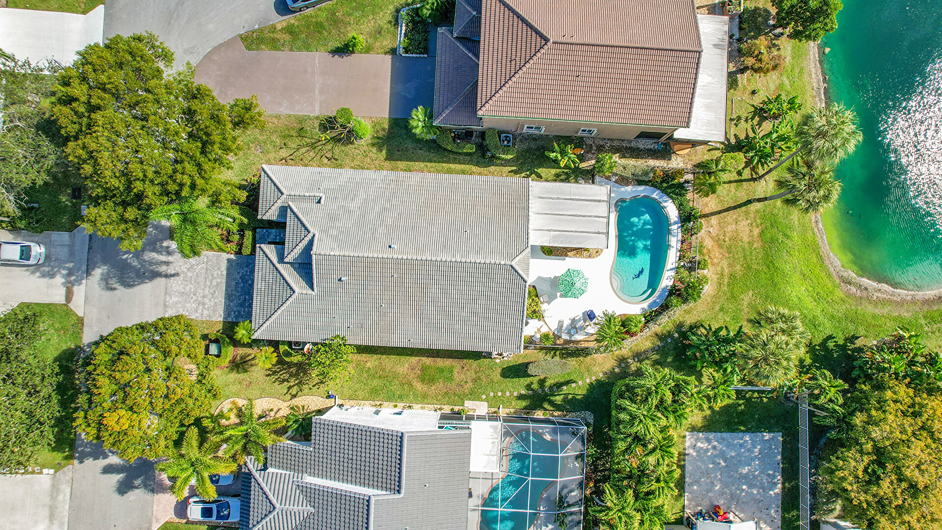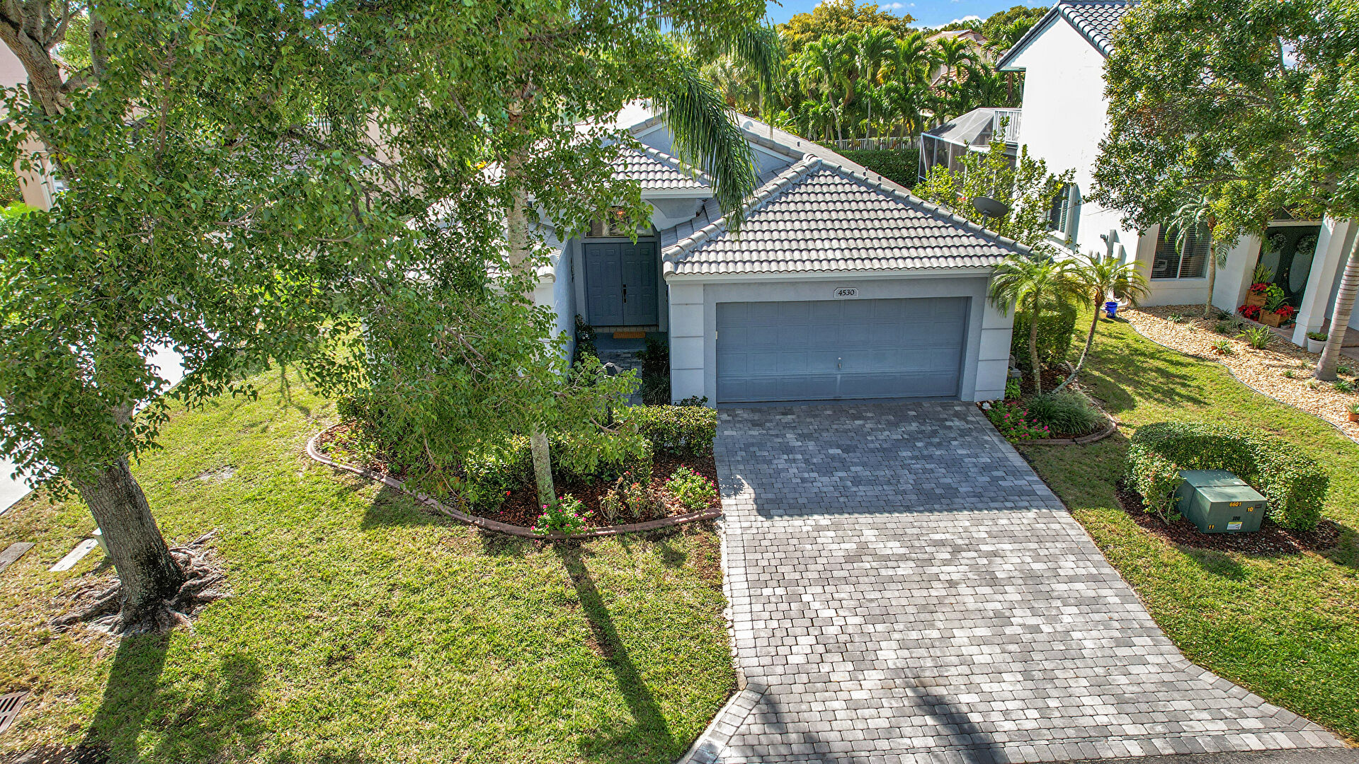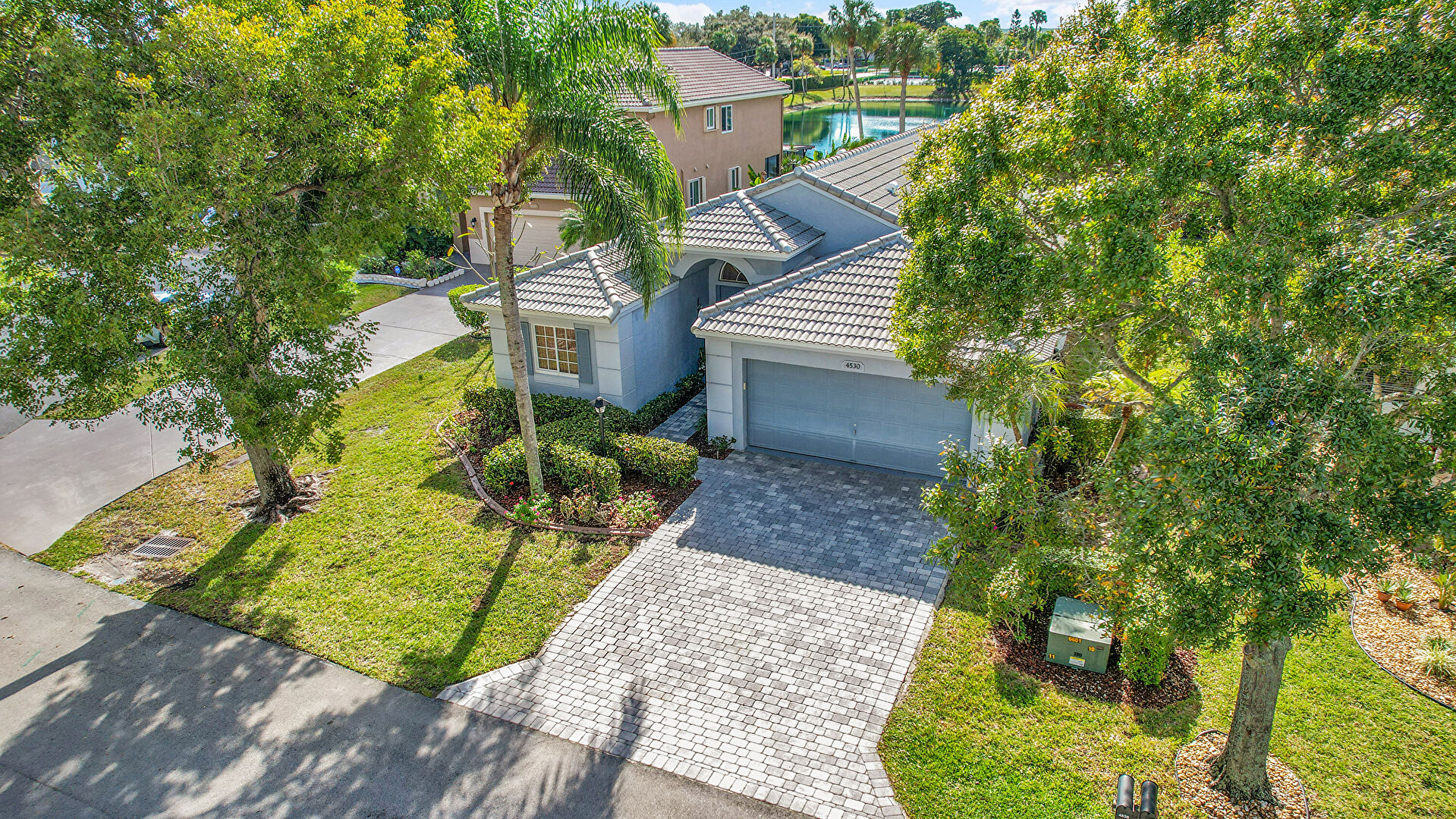 Driveway, Lawn, Pad Mount Transformer, Stucco Siding, Tile Roof, Driveway, Tile Roof