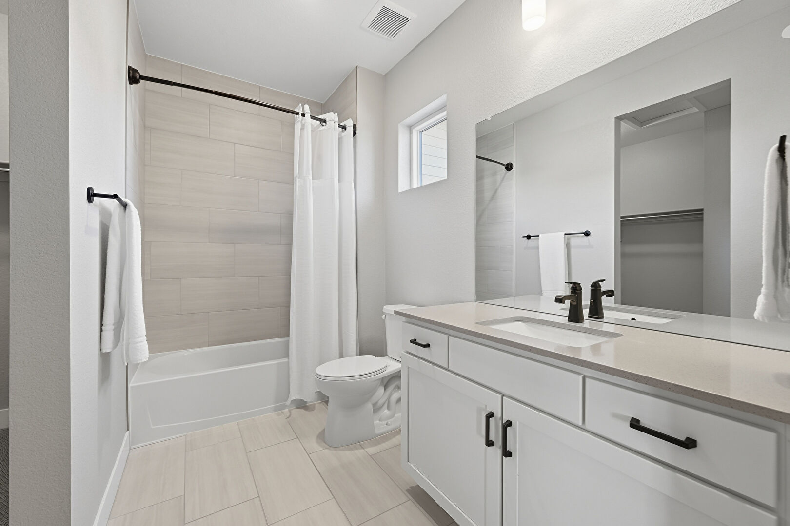 Baseboards Wall, Combined Bath Shower, Drywall, Full Bathroom, Half Bathroom, Natural Light, Textured Wall, Tile Floor, Vanity, Walk In Closet, Wood Finish Floor, Combined Bath Shower, Natural Light, Tile Floor, Vent
