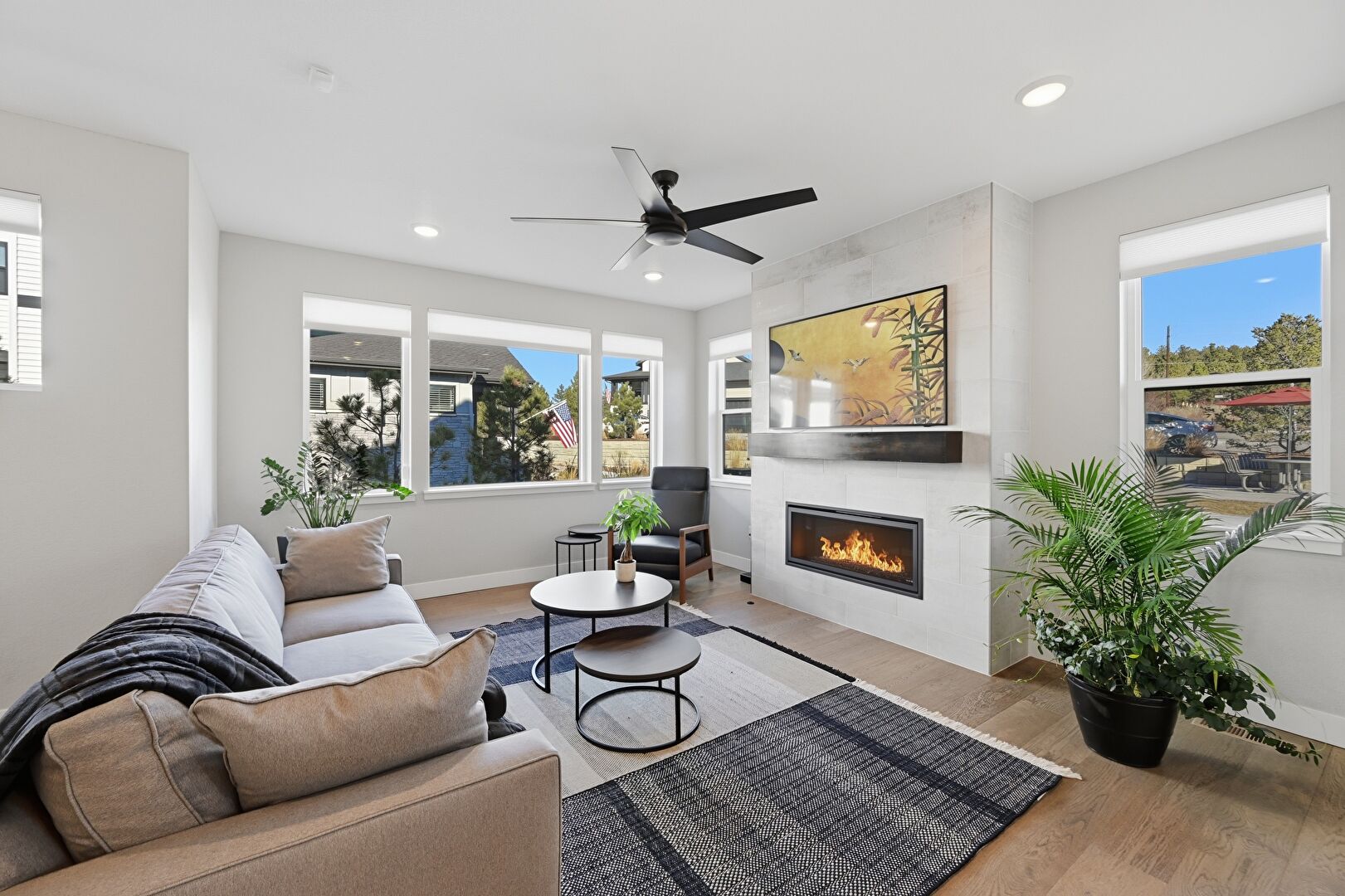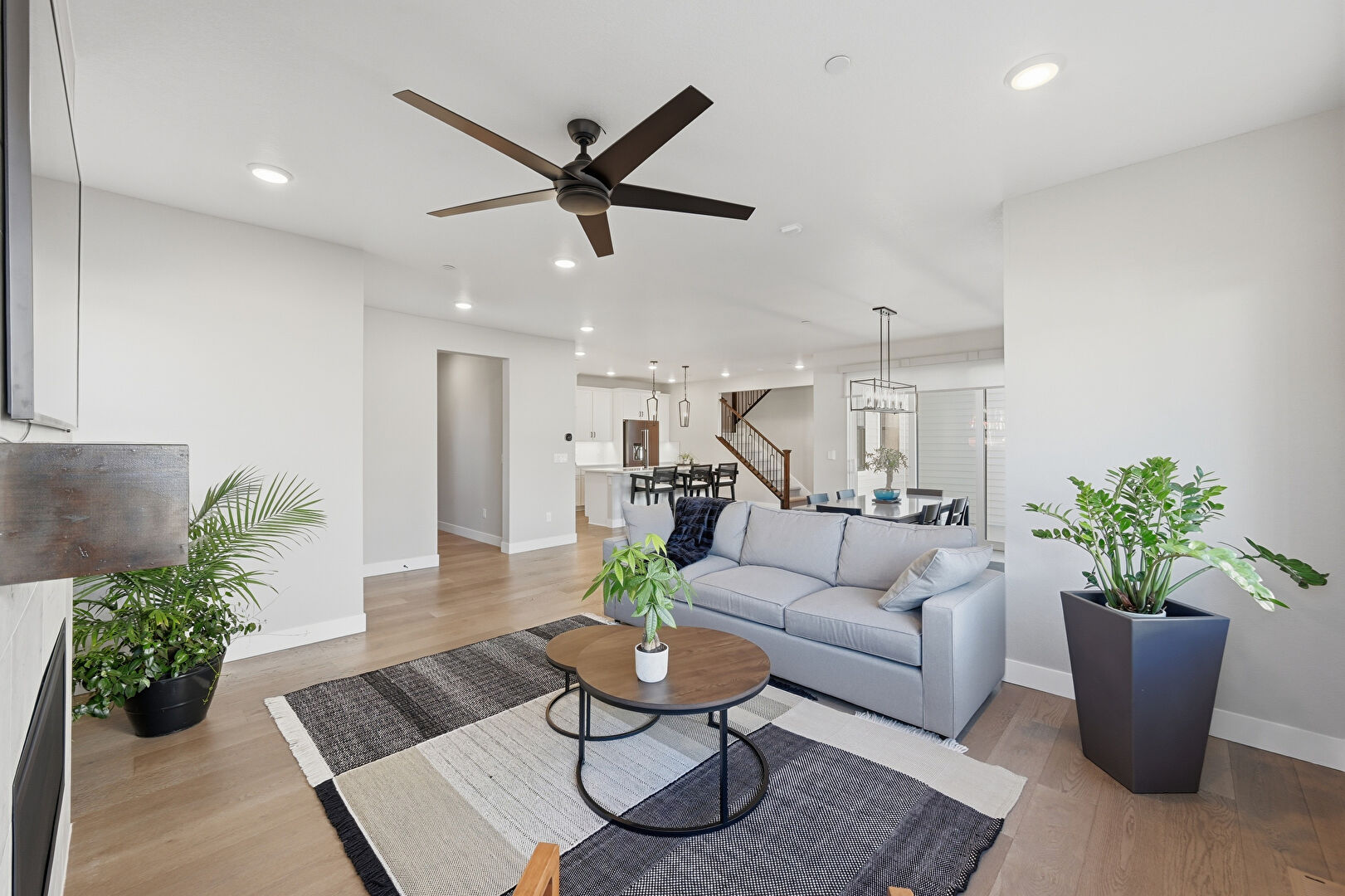 Baseboards Wall, Carpet, Ceiling Fan, Drywall, Fireplace, Natural Light, Notable Chandelier, Recessed Lighting, Vent, Wood Finish Floor, Carpet, Ceiling Fan, Natural Light, Wood Finish Floor