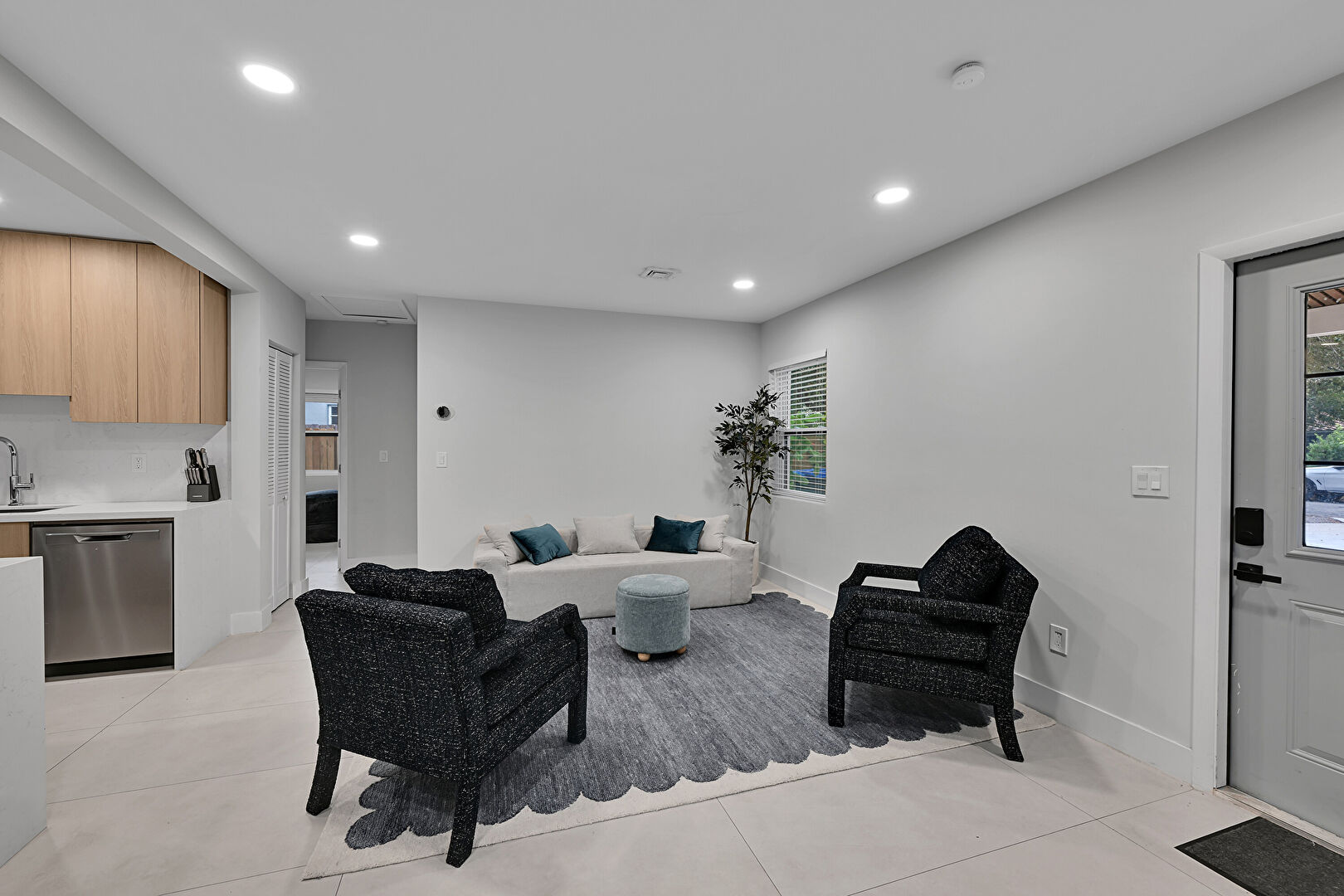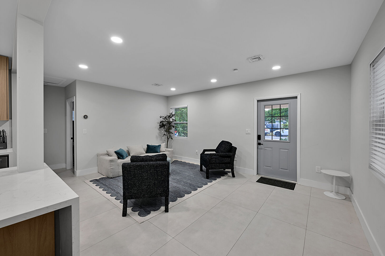 Baseboards Wall, Drywall, Natural Light, Recessed Lighting, Tile Floor, Vent, Baseboards Wall, Natural Light, Smoke Carbon Monoxide Detector, Tile Floor