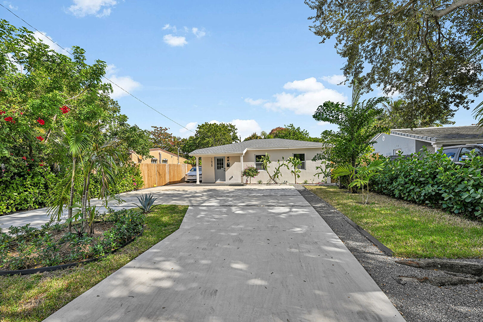 Driveway, Fence, Lawn, Parking Pad, Shingle Roof, Stucco Siding, Driveway, Fence, Parking Pad