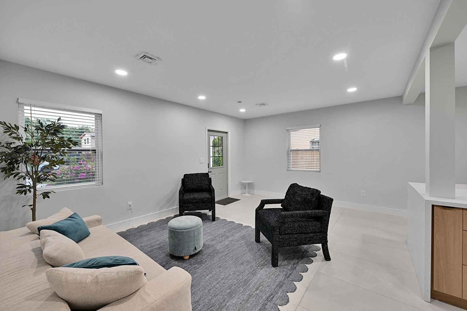 Baseboards Wall, Natural Light, Recessed Lighting, Tile Floor, Vent, Drywall
