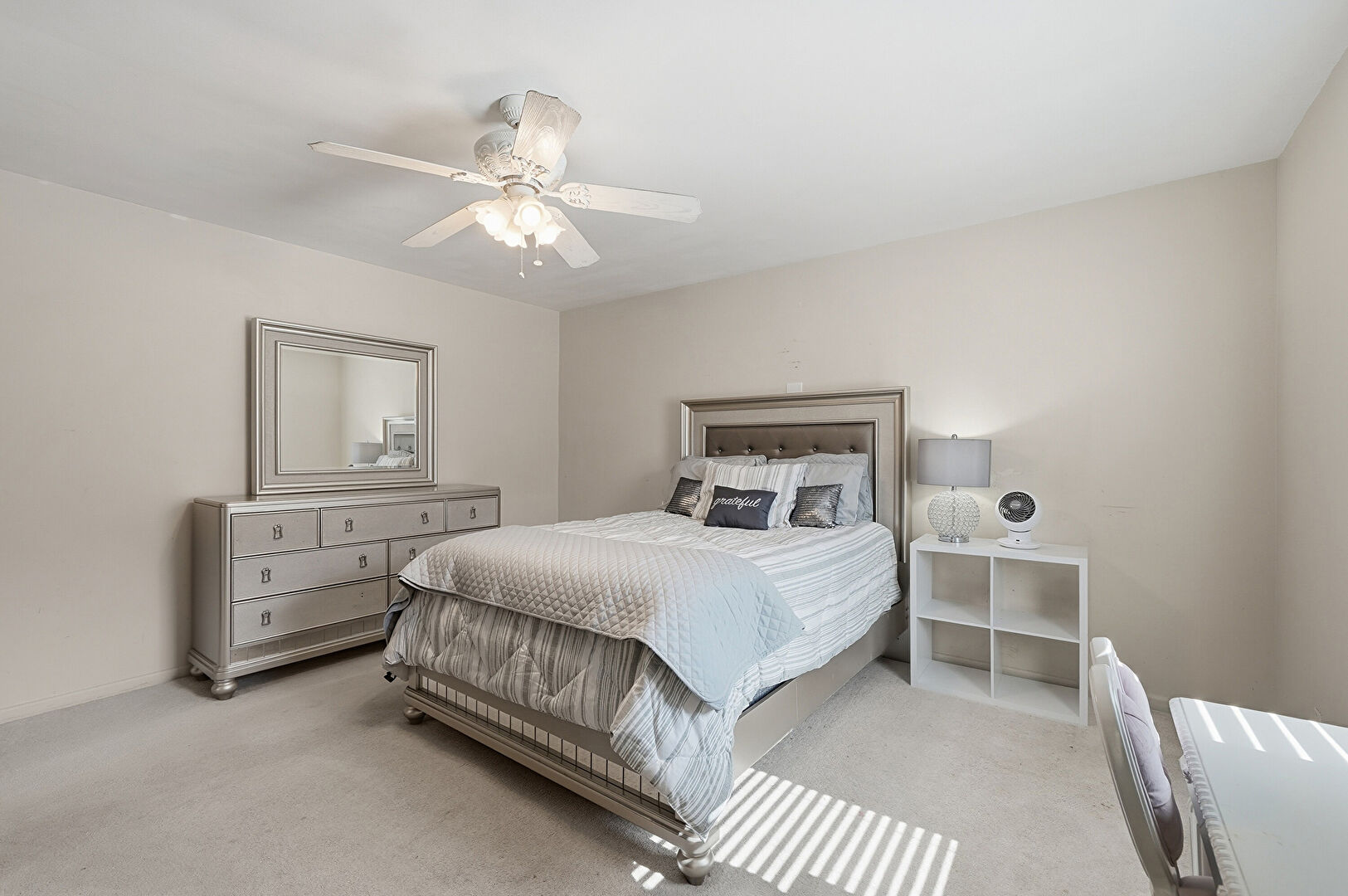 Baseboards Wall, Carpet, Ceiling Fan, Drywall, Ensuite Bathroom, Natural Light, Tile Floor, Vent, Baseboards Wall, Ceiling Fan, Closet, Drywall