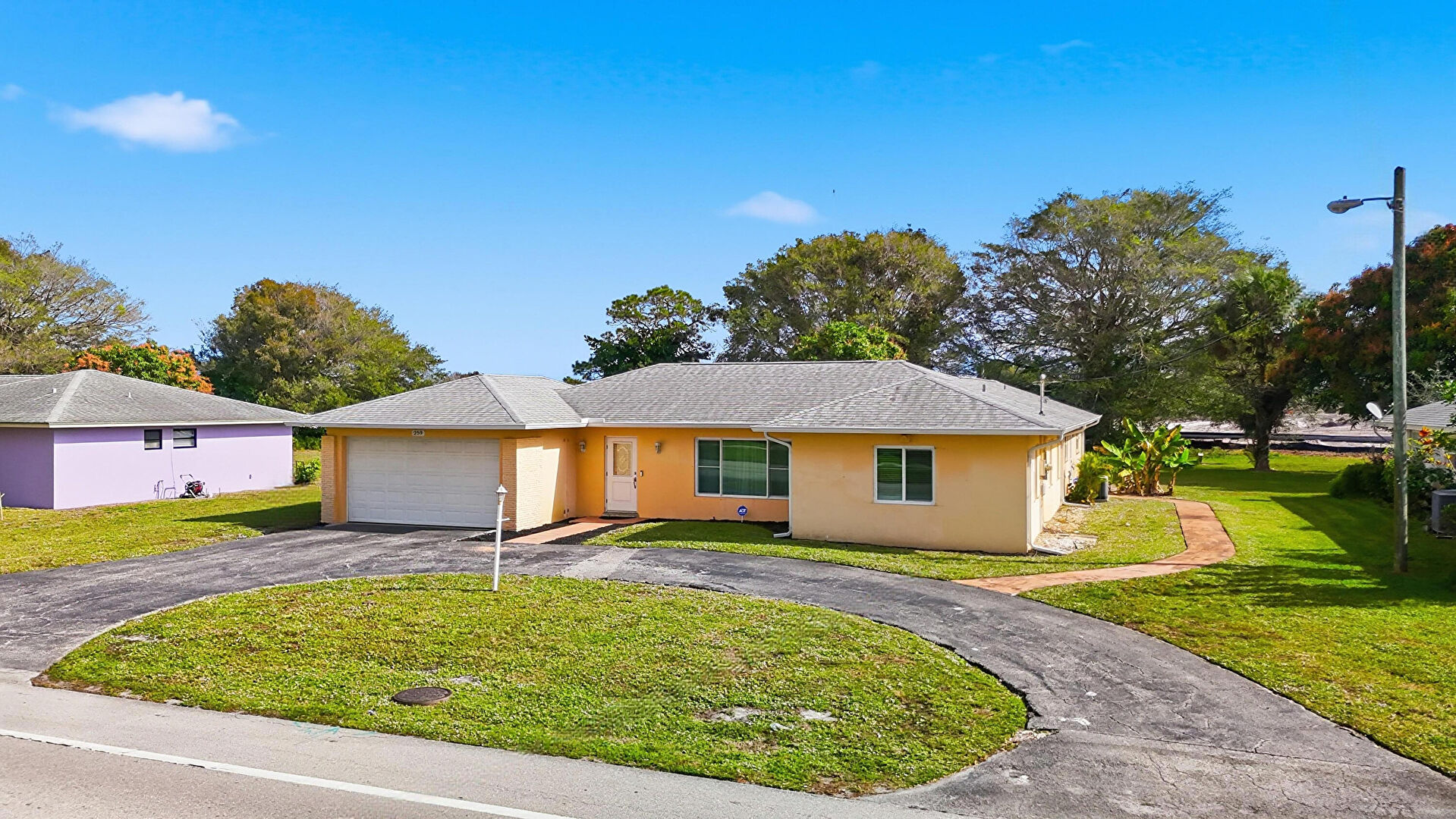 Downspout, Driveway, Gutters, Lawn, Shingle Roof, Stucco Siding, Woods View, Downspout, Lawn