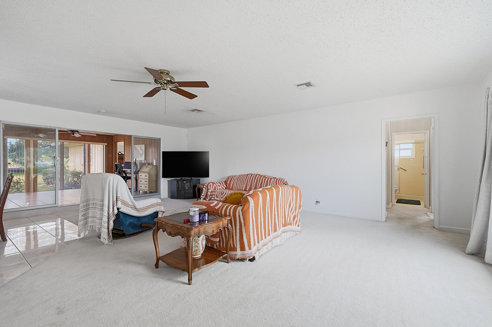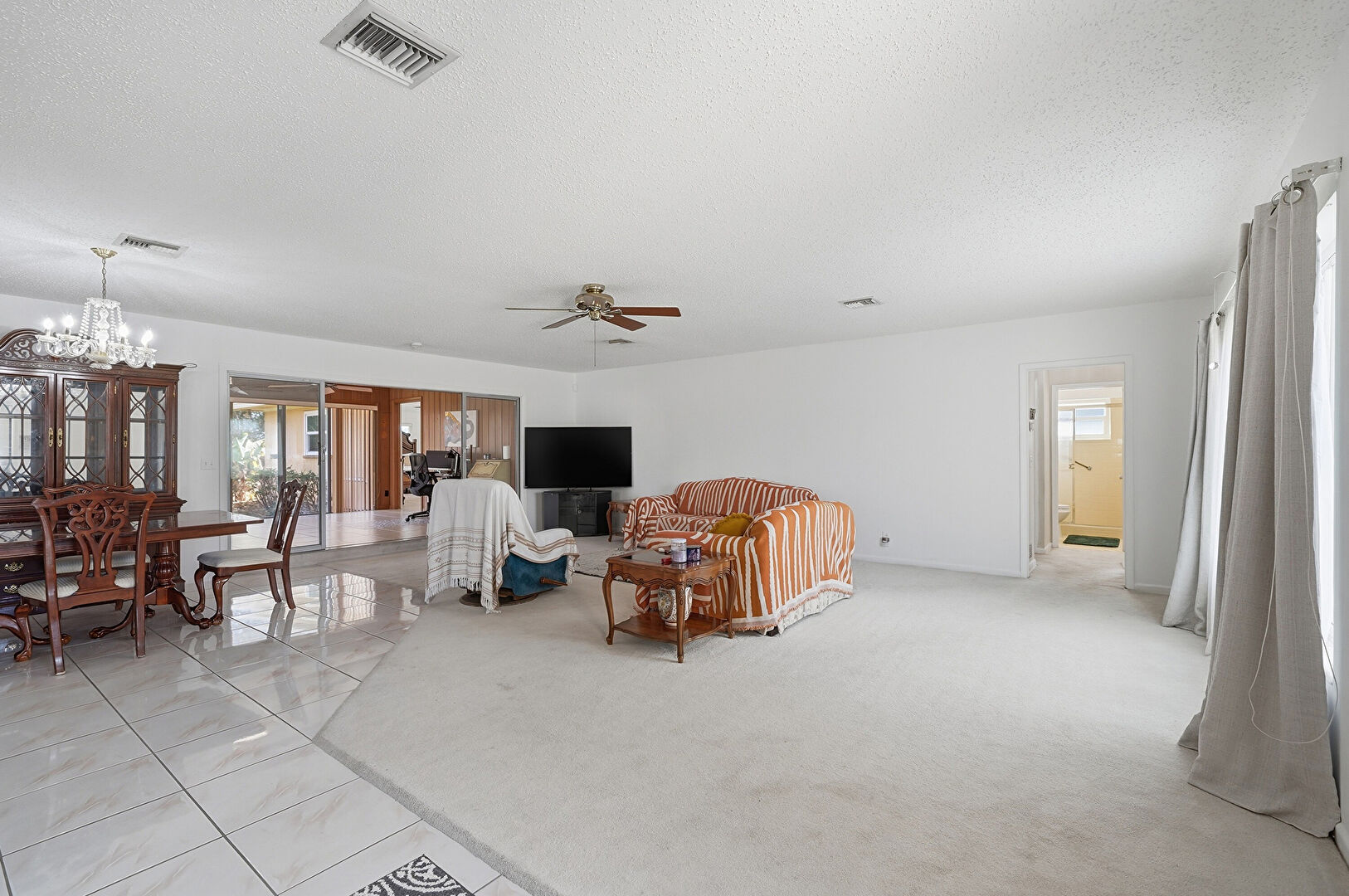 Baseboards Wall, Carpet, Ceiling Fan, Drywall, Natural Light, Notable Chandelier, Sunroom, Textured Ceiling, Tile Floor, Vent, Carpet, Ceiling Fan, Drywall, Natural Light, Vent