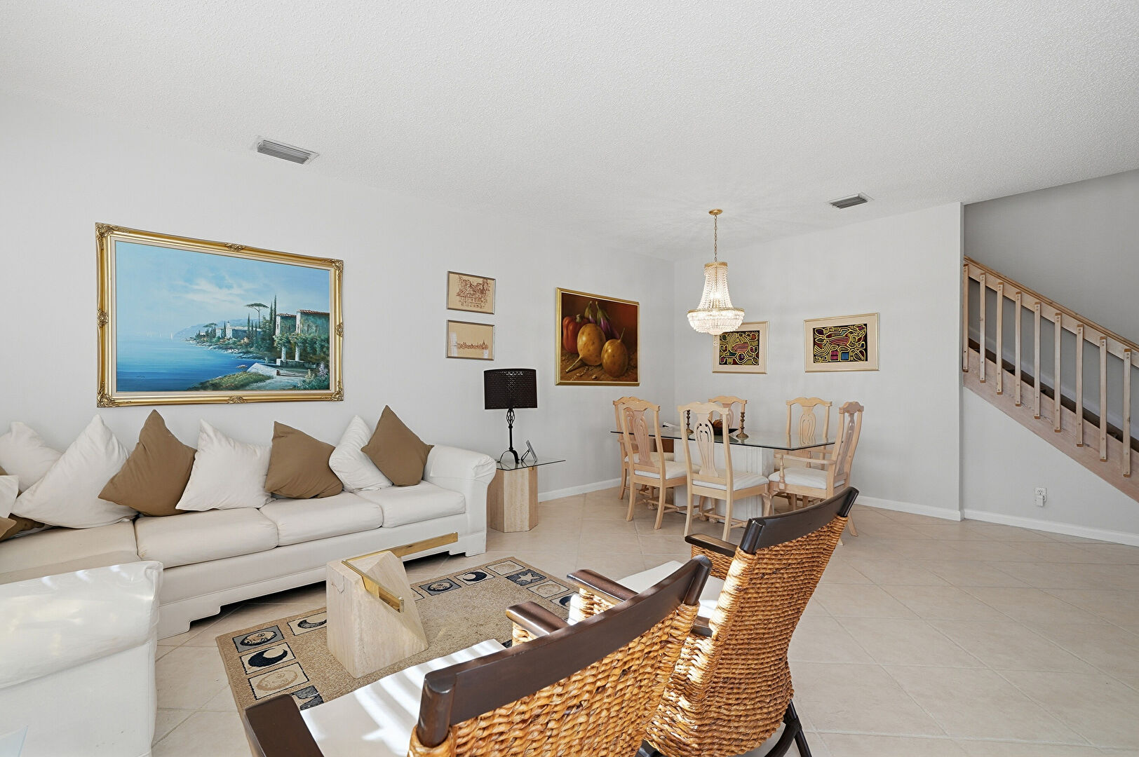 Baseboards Wall, Drywall, Natural Light, Stairs, Textured Ceiling, Tile Floor, Vent, Baseboards Wall, Drywall, Tile Floor