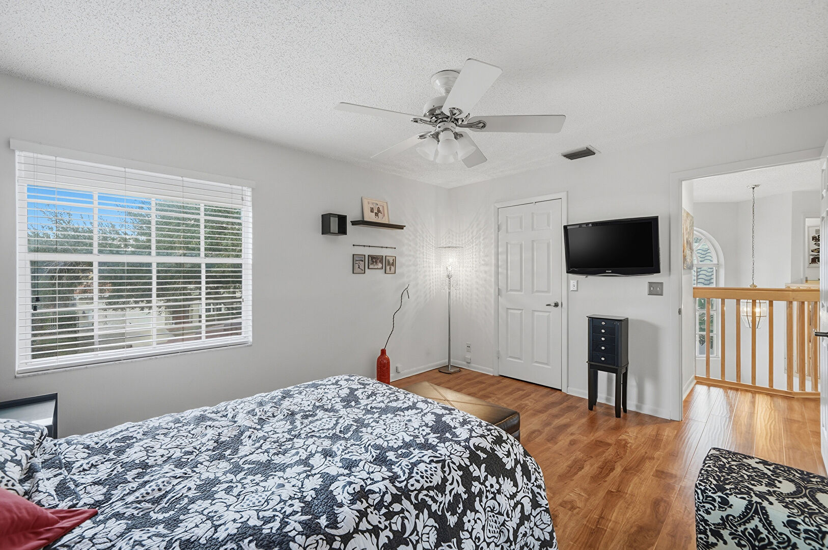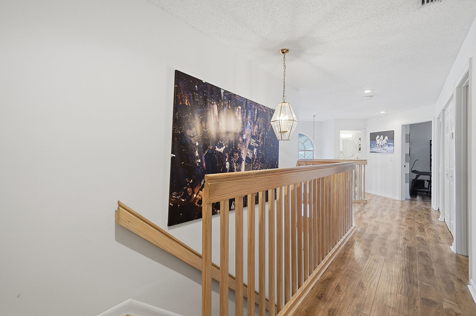 Baseboards Wall, Drywall, Loft, Natural Light, Notable Chandelier, Recessed Lighting, Textured Ceiling, Upstairs Landing, Vent, Wood Finish Floor, Natural Light, Wood Finish Floor