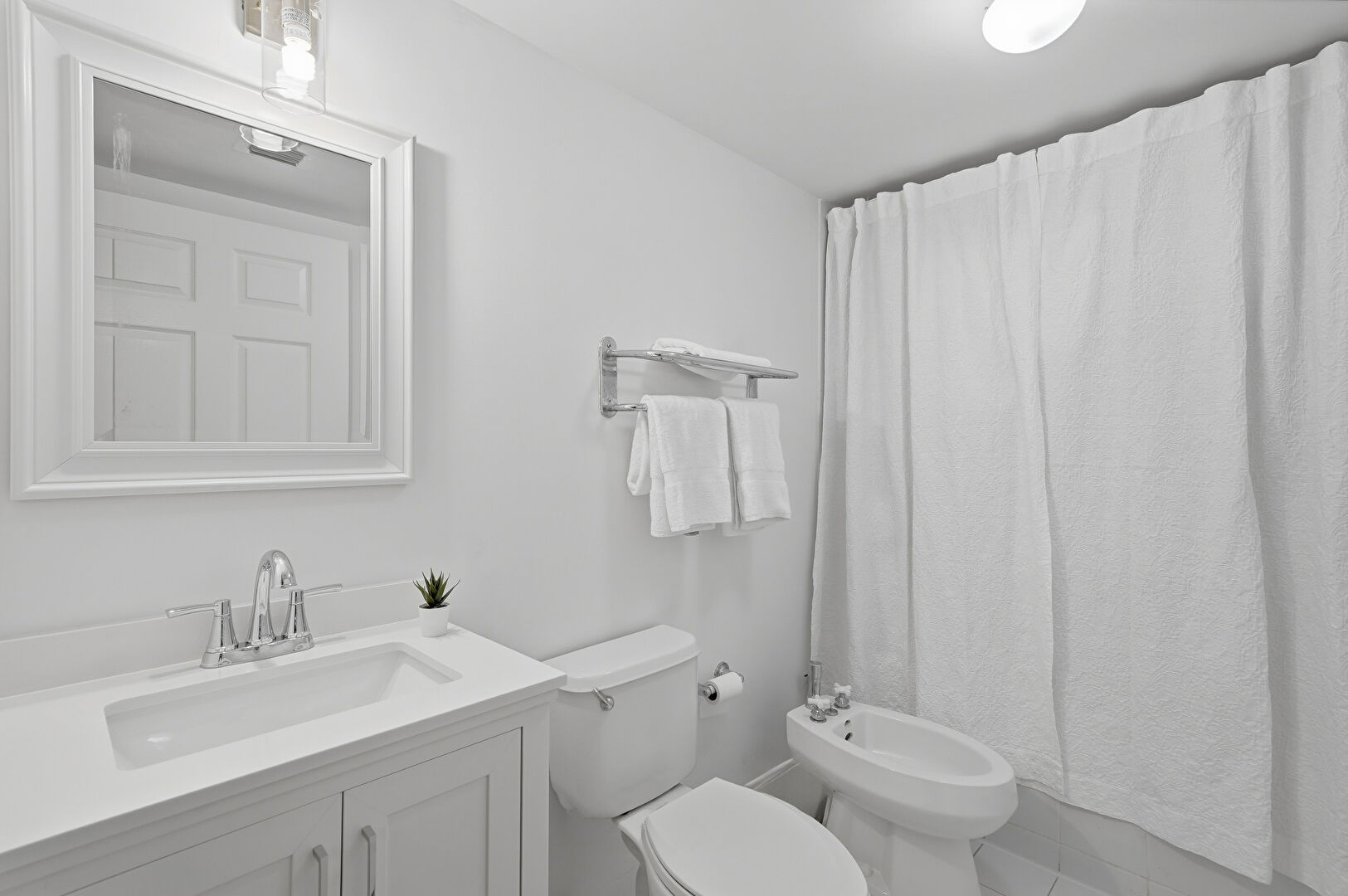 Bidet, Full Bathroom, Tile Floor, Vanity, Vent, Drywall