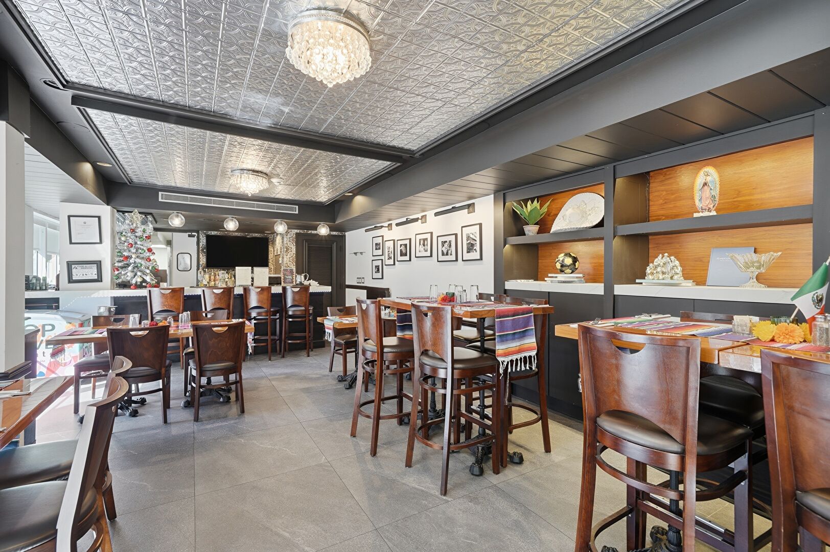 Arched Walkways, Baseboards Wall, Drywall, French Doors, Kitchen Peninsula, Natural Light, Notable Chandelier, Open Shelves, Pass Through Window, Tile Floor, Tin Ceiling, Vaulted Ceiling, Vent, Barrel Ceiling, Drywall, Kitchen Bar